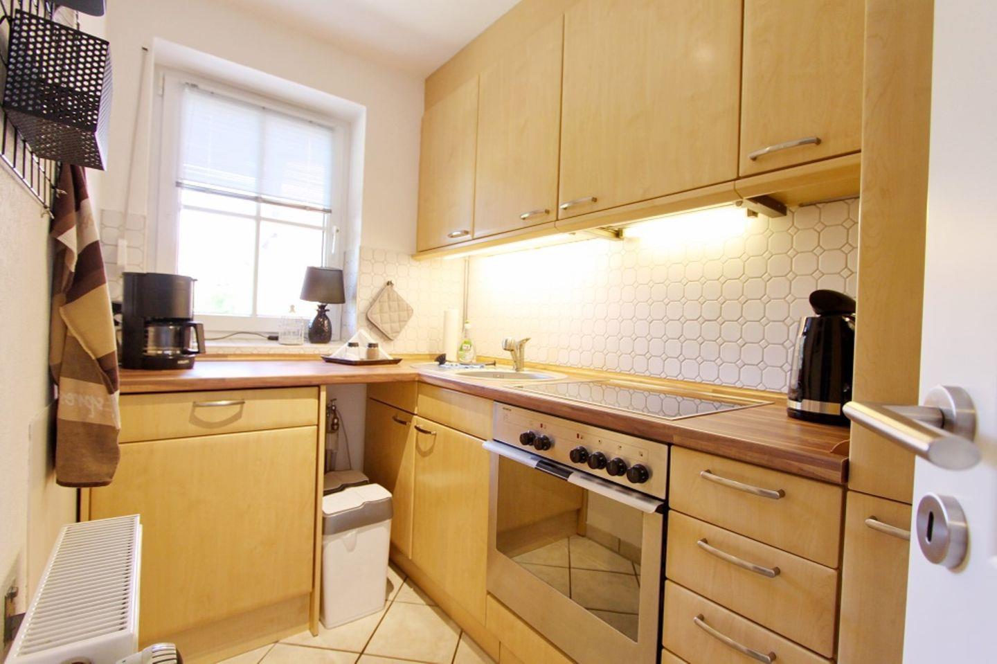 Im Erdgeschoss finden Sie die separate Einbauküche mit Cerankochfeld, Backofen, Geschirrspüler, Kühlschrank mit Gefrierfach, Wasserkocher, Toaster und Kaffeemaschine.