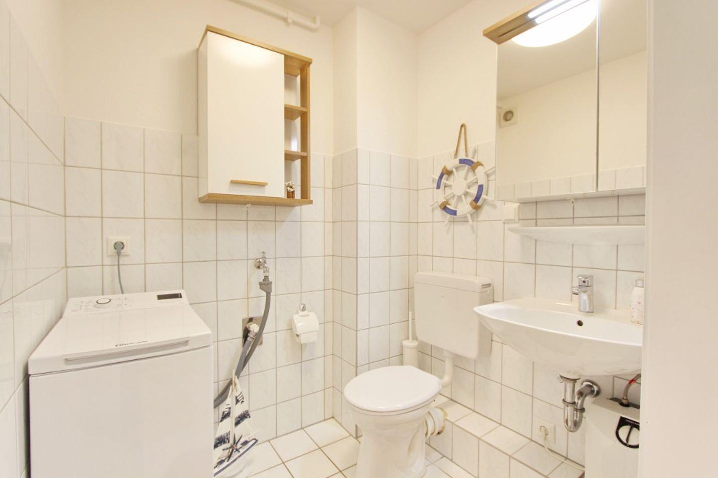Weiter befindet sich hier ein Gäste WC mit Waschmaschine zur alleinigen Nutzung.