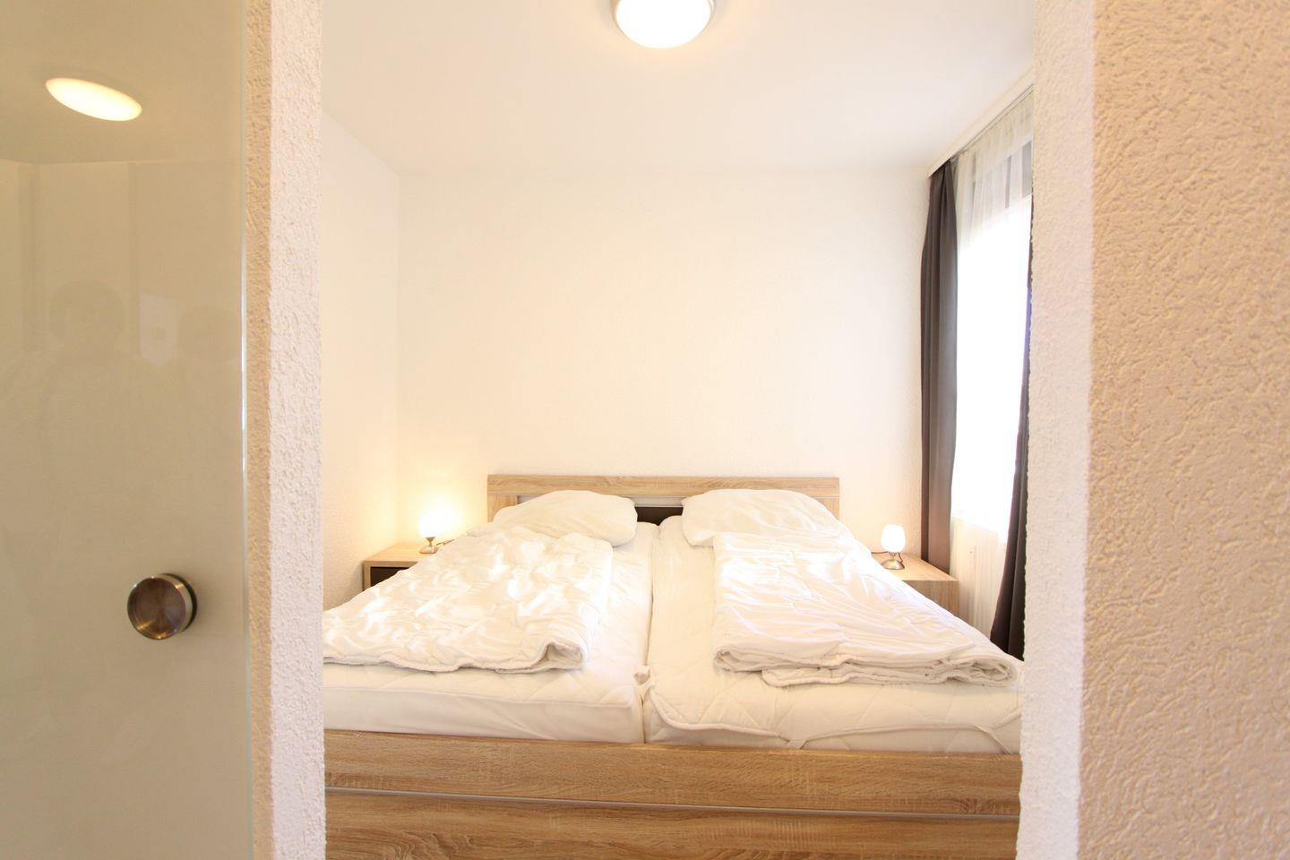 Die ca. 56m² große Ferienwohnung bietet Platz für bis zu 4 Personen und verteilt sich auf zwei Zimmer, Küche und Bad.