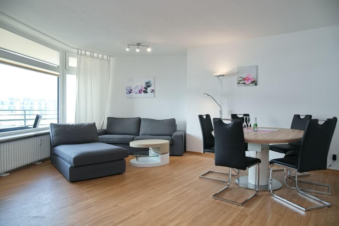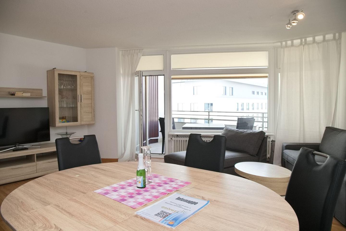 Moderne, helle Ferienwohnung mit möblierten Balkon und Teilseeblick in Westlage nur wenige Gehminuten vom wunderschönen Strand entfernt.