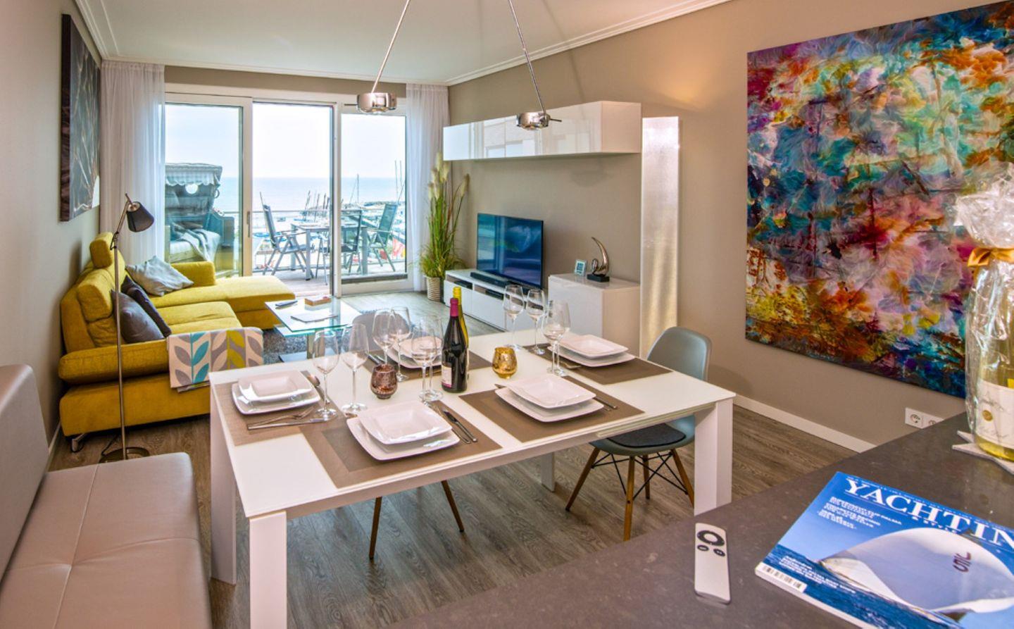 Moderne und stilvolle 3-Zimmer-Wohnung für 5 Personen mit 100 % Seeblick, direkt am Strand und fantastischem Blick in den Yachthafen Grömitz.
