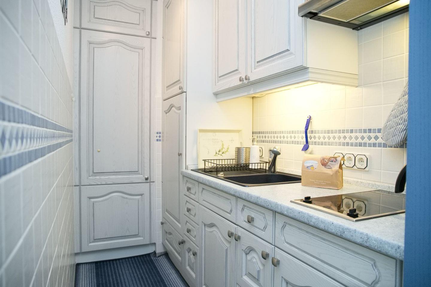Die separate Küche ist komplett ausgestattet mit einem 2-Platten-Ceranfeld, einer Mikrowelle mit Backfunktion, einem Kühlschrank mit Gefrierfach, einem Wasserkocher, einem Toaster und einer Kaffeemaschine. Hier finden Sie alles, was Sie für die Zubereitung leckerer Mahlzeiten benötigen. Das gemütliche Schlafzimmer, das durch zwei Türen begehbar ist, verfügt über ein großes Doppelbett (Liegefläche 2x2 m mit durchgehender Matratze) sowie einem weiteren Flachbild-TV. Erholen Sie sich hier in ruhiger Atmosphäre nach einem ereignisreichen Tag.