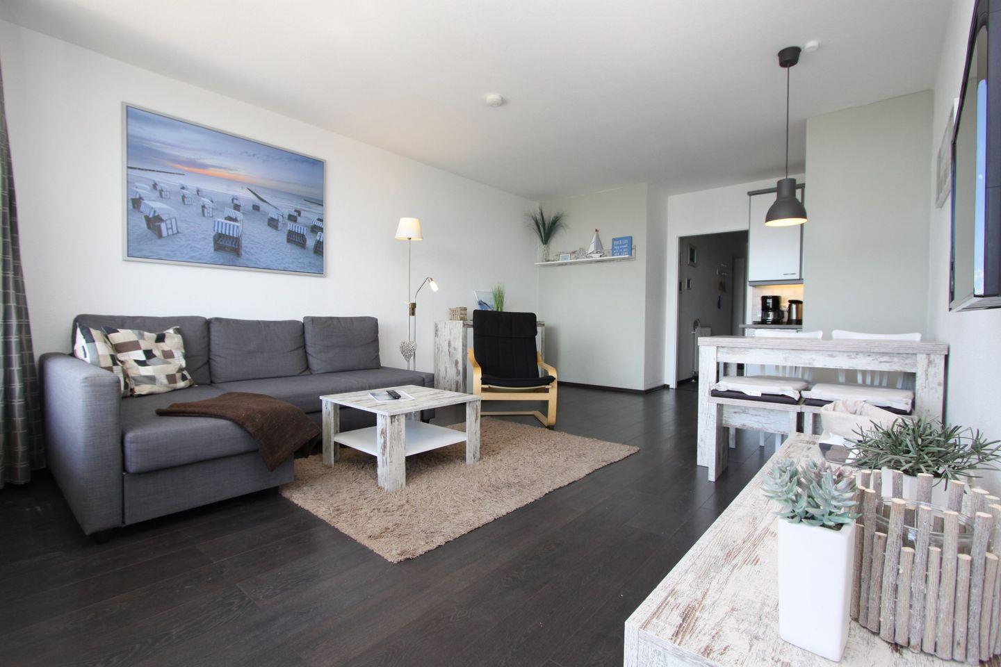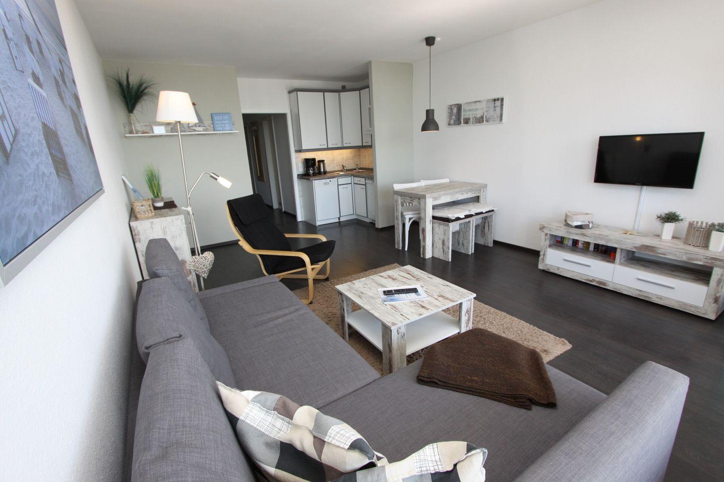 Schöne zwei Zimmer Ferienwohnung mit ca. 47m² in der 3. Etage einer gepflegten Wohnanlage direkt an der Promenade.
