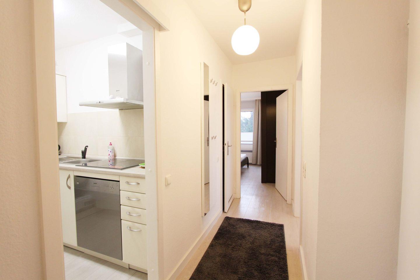In der Wohnung angekommen erwartet Sie ein heller Flur mit Garderobe und Abstellraum.