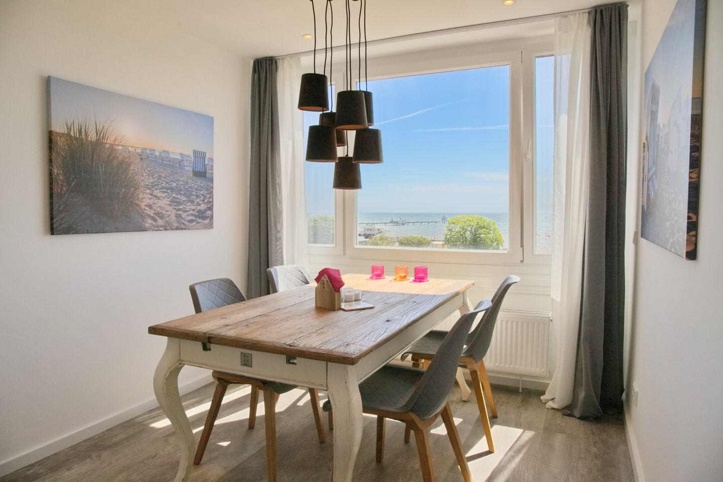 Moderne und aufwendig sanierte 3- Zimmer Ferienwohnung mit direktem Strandzugang und 100% Blick auf die Ostsee von Grömitz.