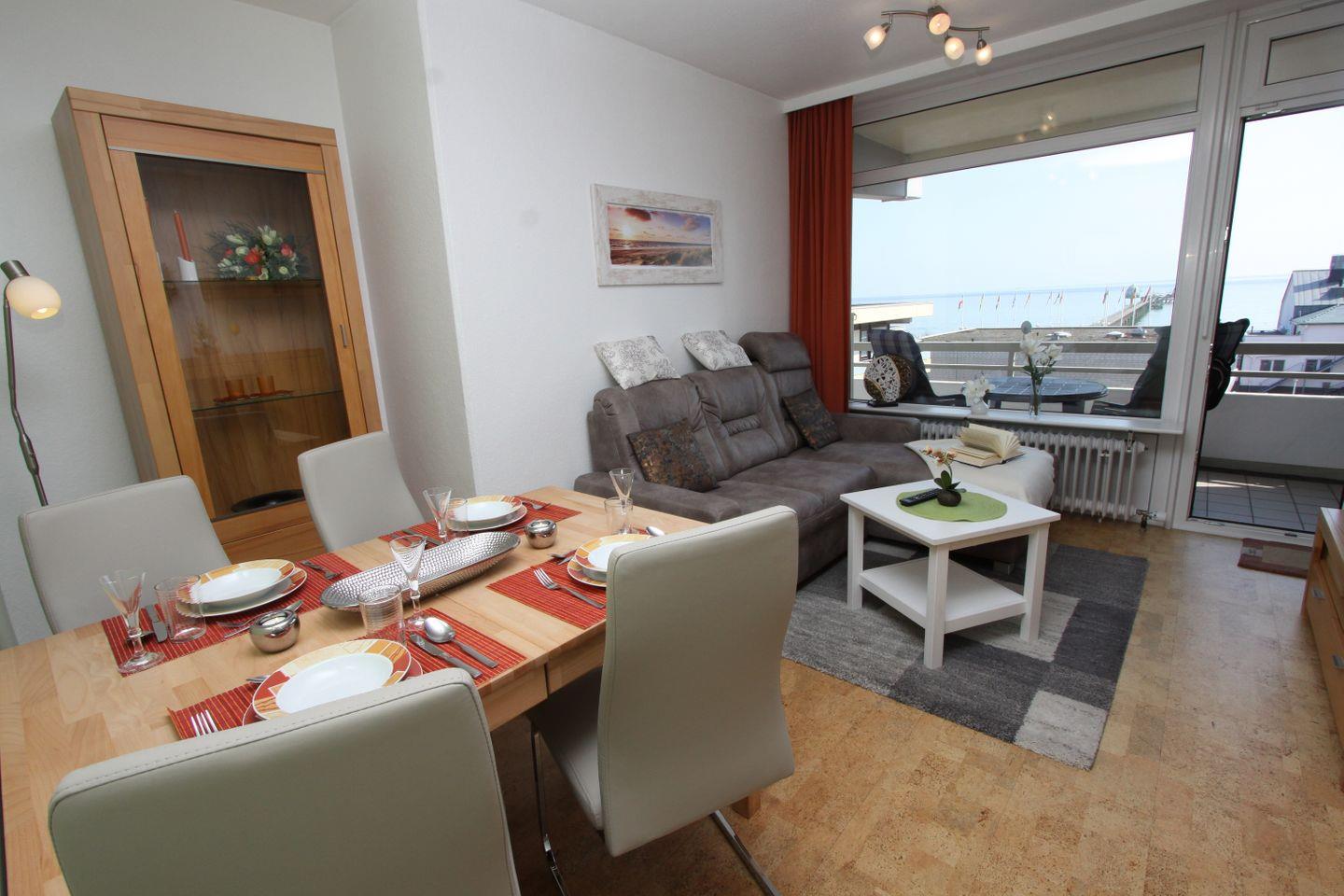 Sehr schöne 3 Zimmer Ferienwohnung mit möblierten Eckbalkon in Südostlage und Seeblick.Im Herzen von Grömitz wohnen Sie in dieser Wohnung.