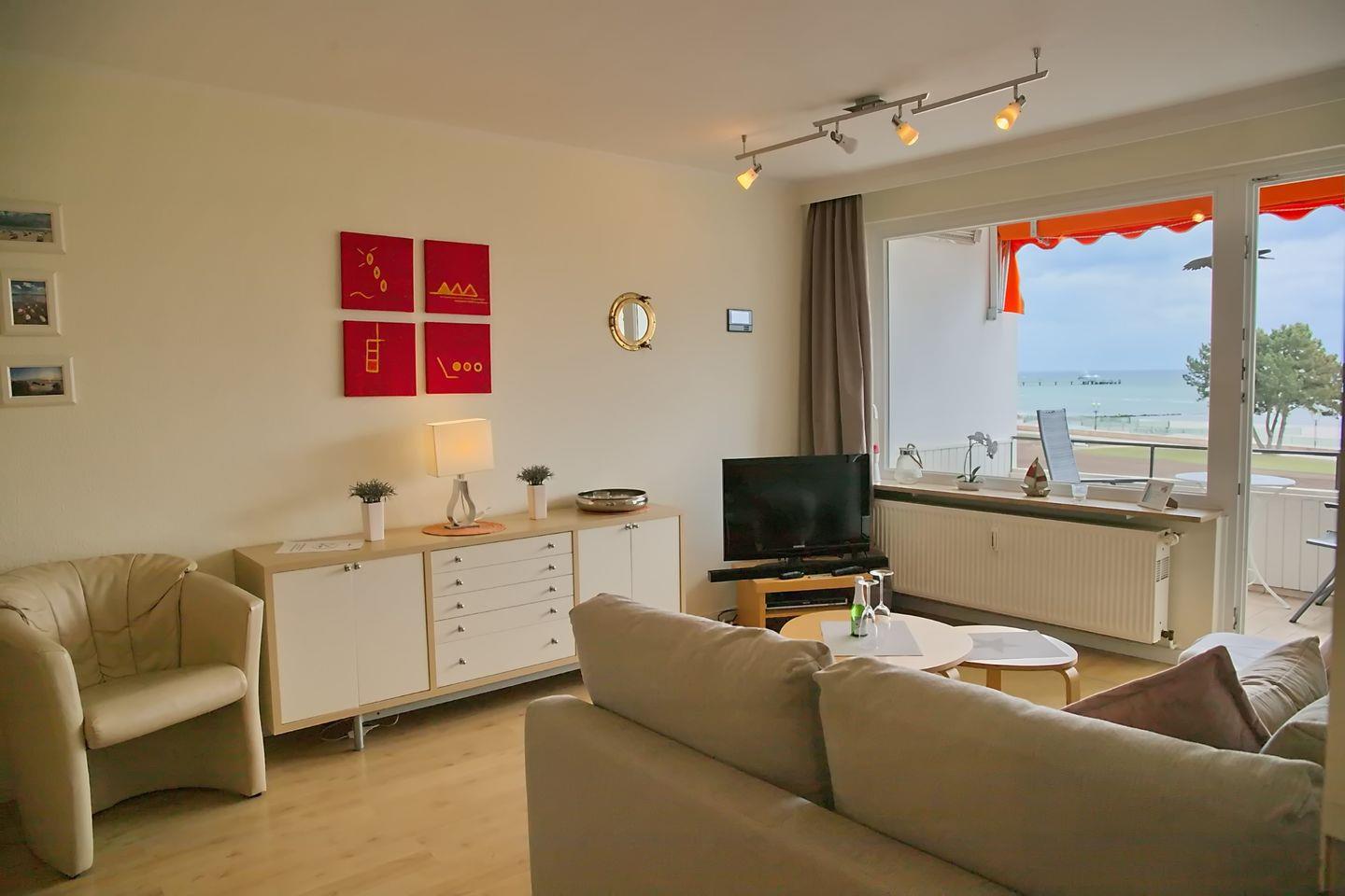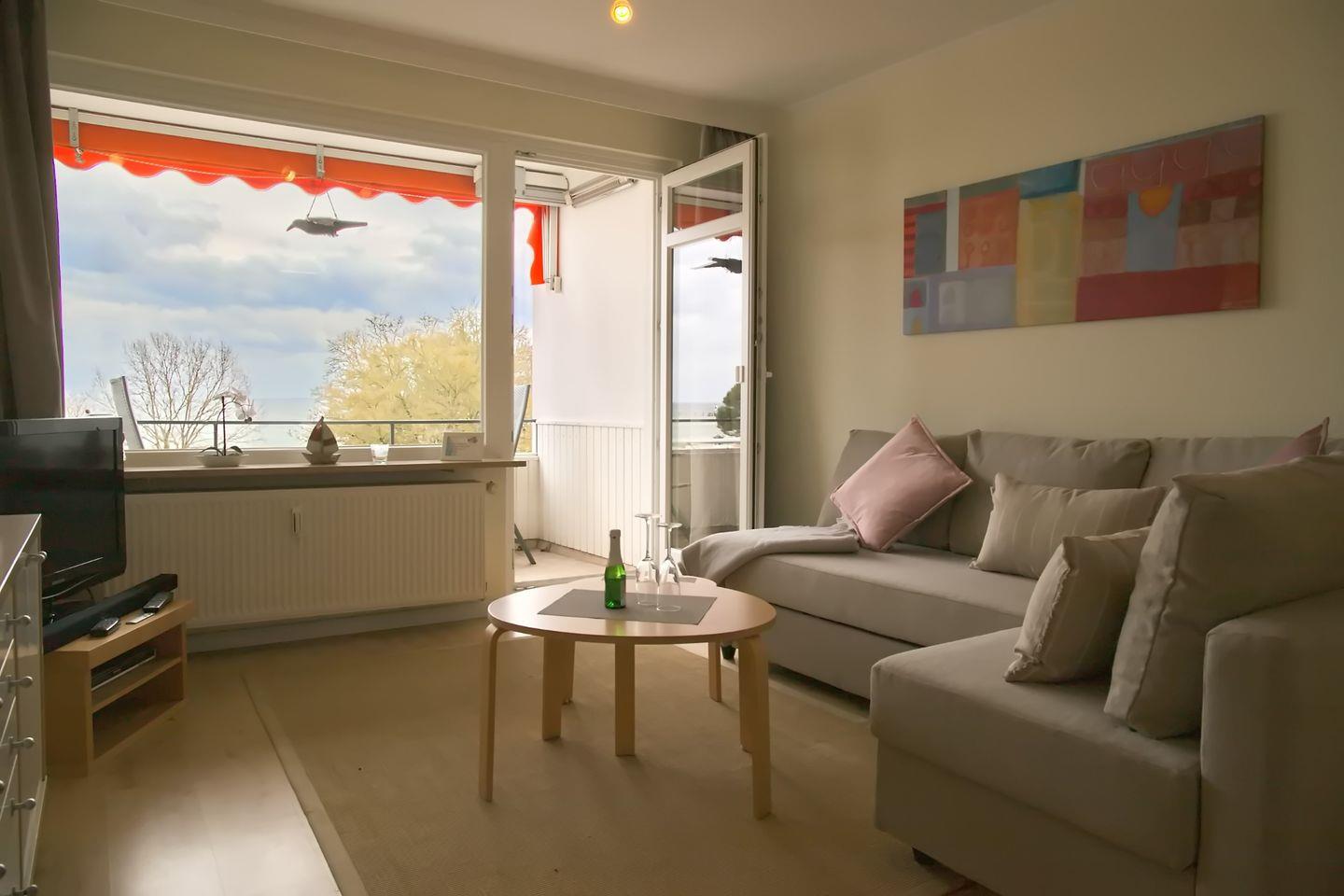 Sehr schöne Ferienwohnung mit traumhaften Ostseeblick. Sie haben hier aus allen 3 Zimmern einen Meerblick . Dies ist eine komfortable Wohnung (ca. 62 m²) mit 2 möblierten Balkonen zur Seeseite.