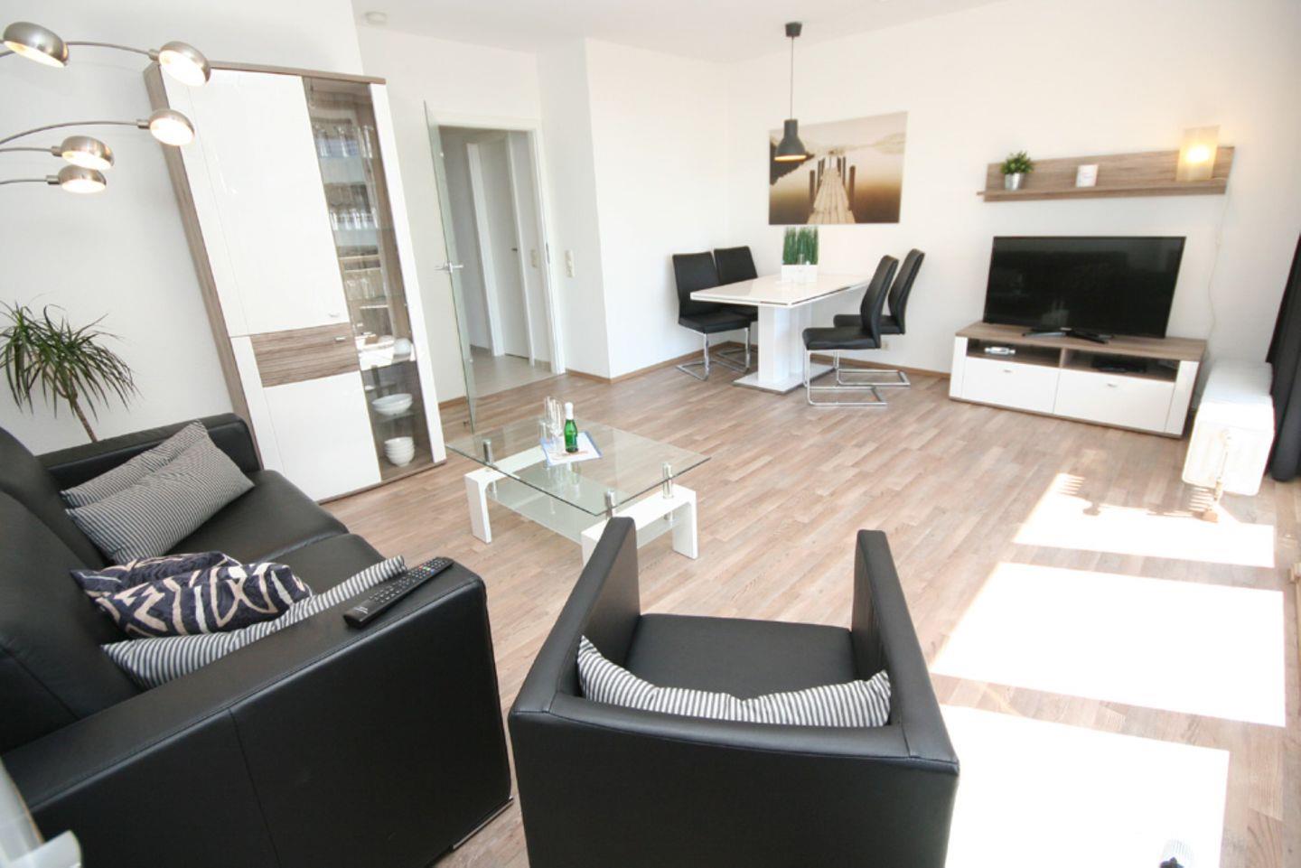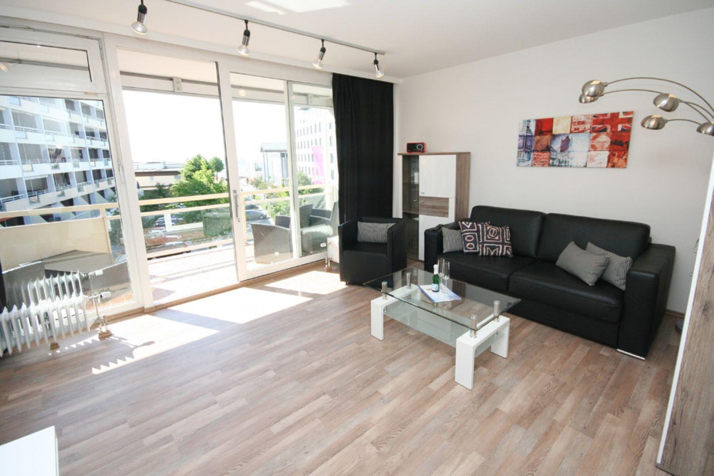 Diese moderne Ferienwohnung liegt in der 3. Etage einer gepflegten Wohnanlage. Die ca. 49m² große Wohnung verteilt sich auf zwei Zimmer, Küche, Bad und Balkon in Südlage.