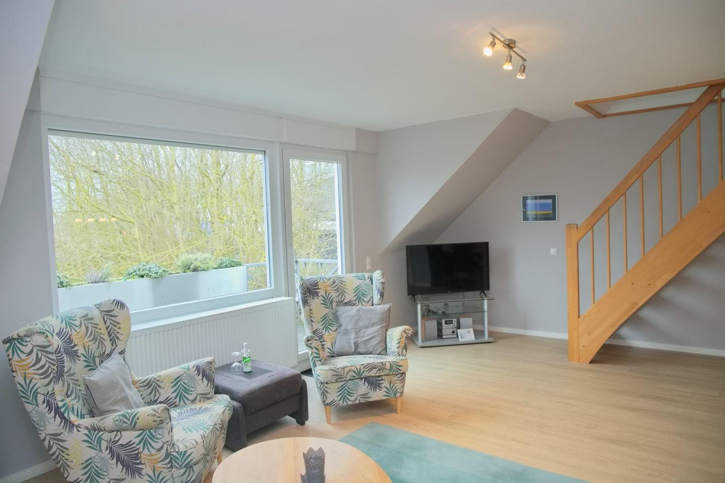Schöne 3-Zimmer-Wohnung für 4 Personen mit möbliertem Süd-/ Westbalkon über 2 Ebenen in der Nähe vom feinen Ostseestrand und Yachthafen.