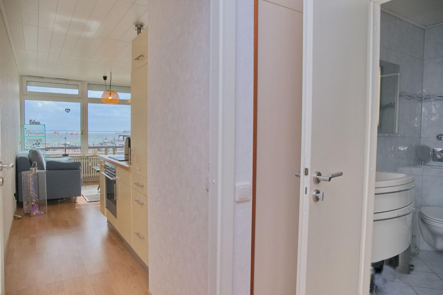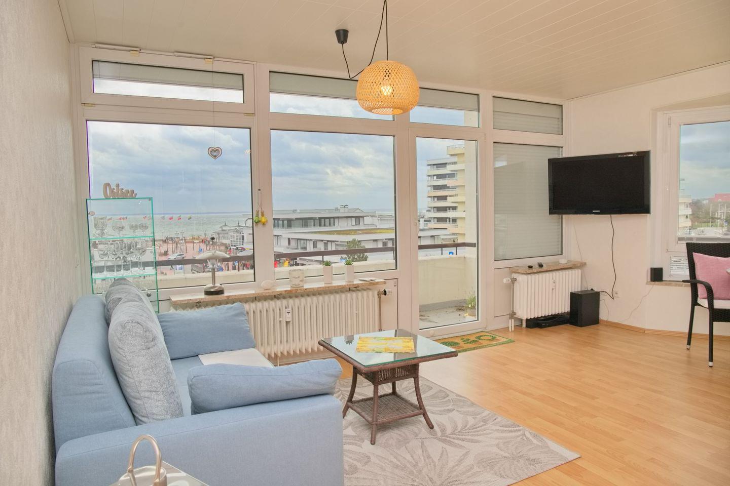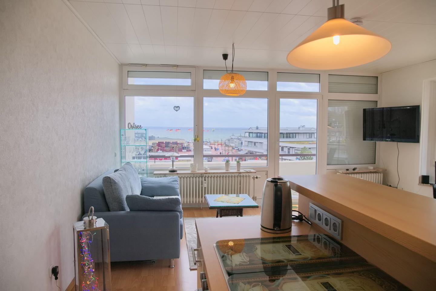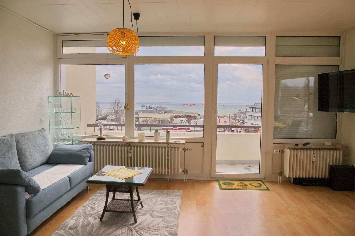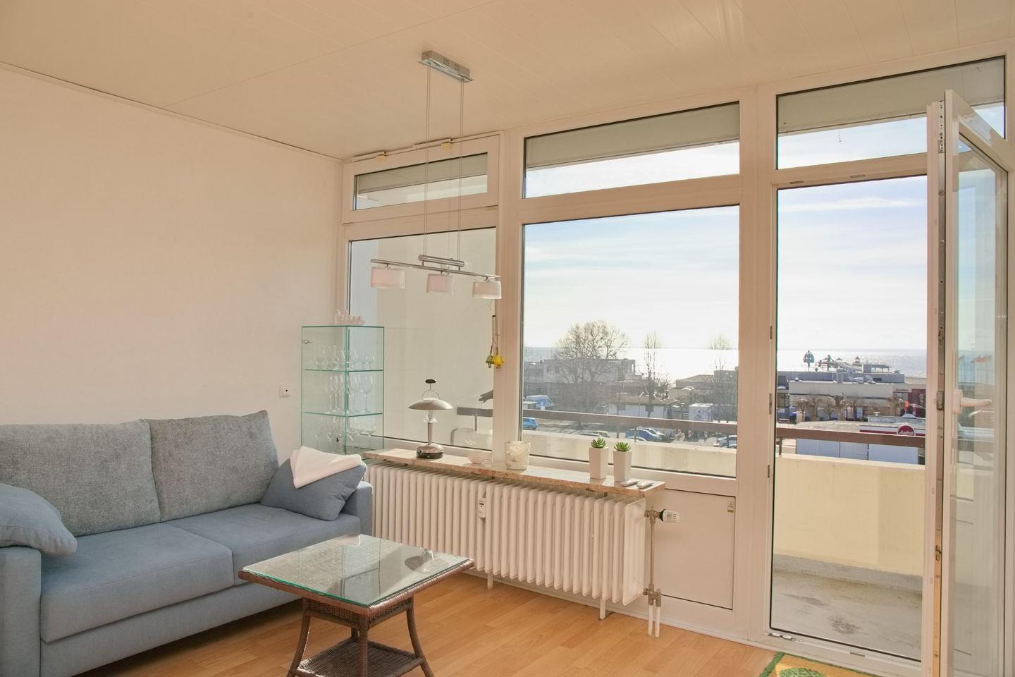 Die Ferienwohnung "Villa am Meer Whg.84" ist eine wunderschöne 2-Zimmer-Wohnung im 4. Stockwerk, die einen atemberaubenden Blick auf das Meer bietet. Sie verfügt über einen möblierten Südbalkon, auf dem man die Sonne und die frische Meeresbrise genießen kann.