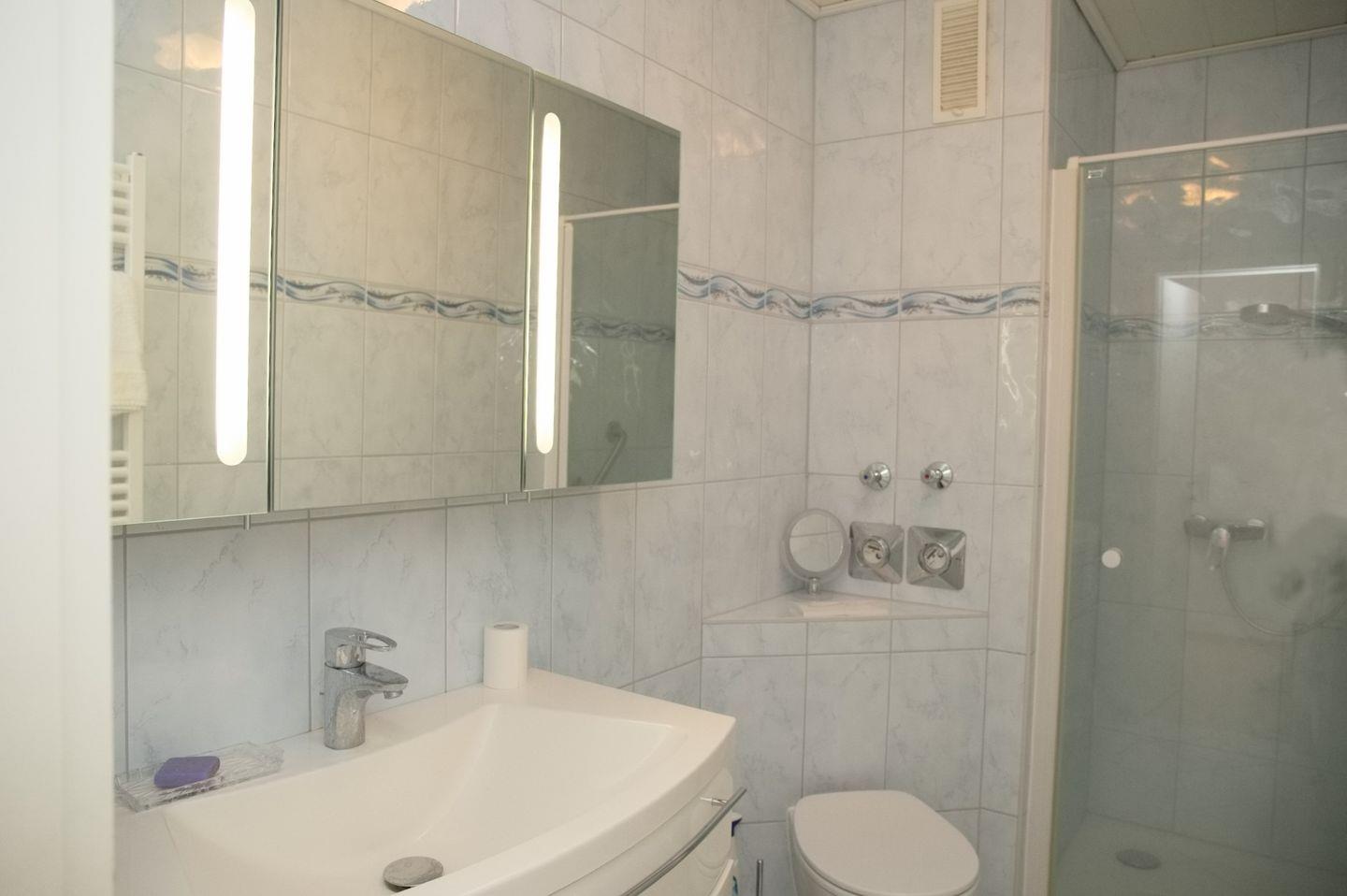 Das Badezimmer ist mit einer Dusche und einer Toilette ausgestattet, um Ihre Bedürfnisse zu erfüllen.