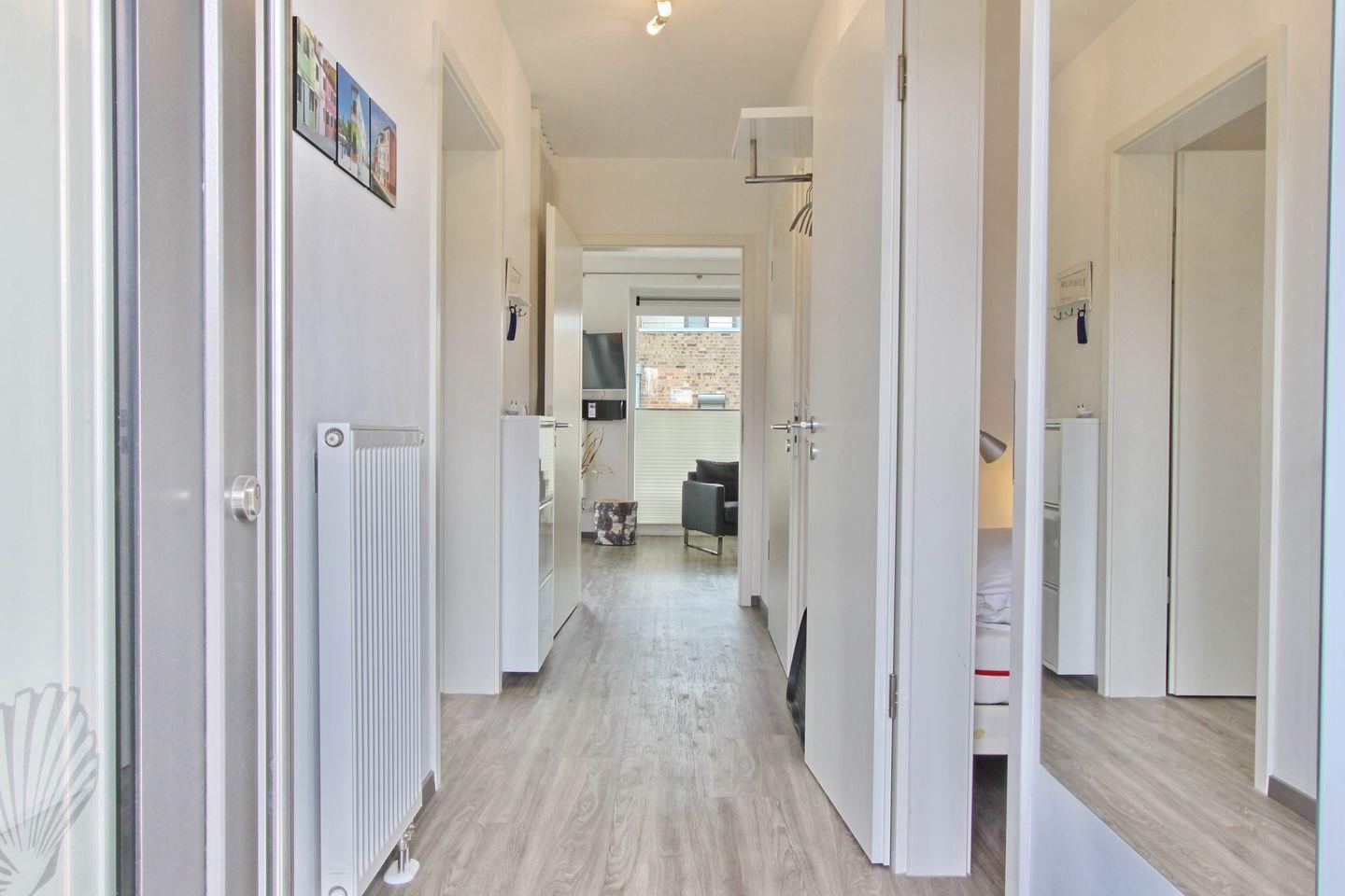 Im Flur in einer Nische finden Sie einen Waschtrockner.