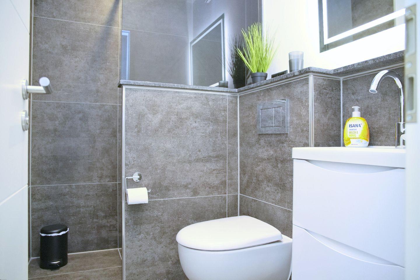 Das Schlafzimmer lädt mit einem bequemen Doppelbett und Außenrollläden zu erholsamen Nächten ein. Ein zusätzlicher Fernseher sorgt für Unterhaltung direkt im Schlafzimmer. Das moderne Duschbad, mit Rainshower, ist mit einem WC, einem Waschtisch und einem beleuchteten Spiegel ausgestattet.