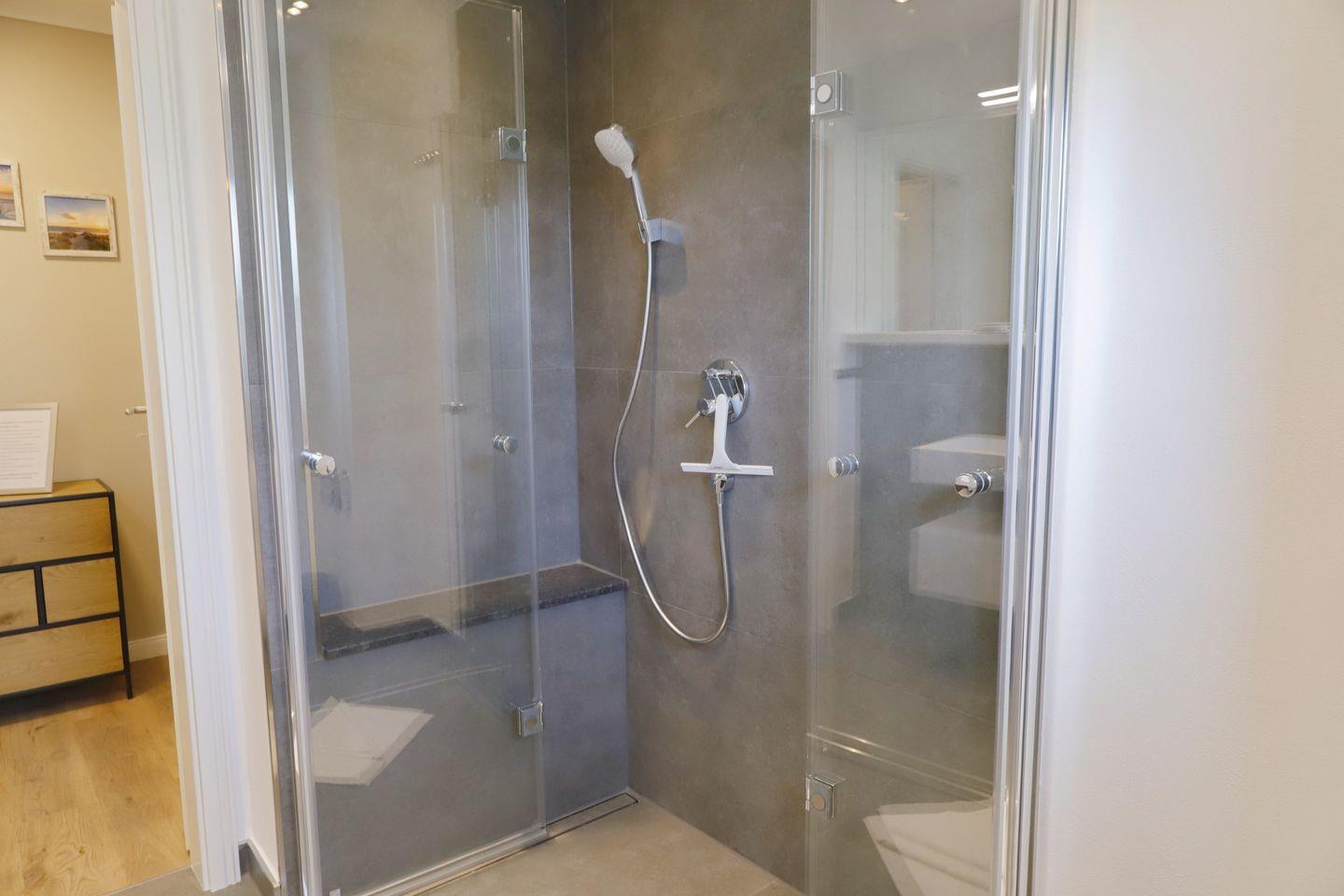 Das komplett sanierte und modernisierte Badezimmer rundet das Angebot ab. Hochwertige Sanitärobjekte und Einbauten namhafter Hersteller. Lassen Sie sich von der bodentiefe Rain-Dusche verwöhnen und starten Sie entspannt in den Tag.