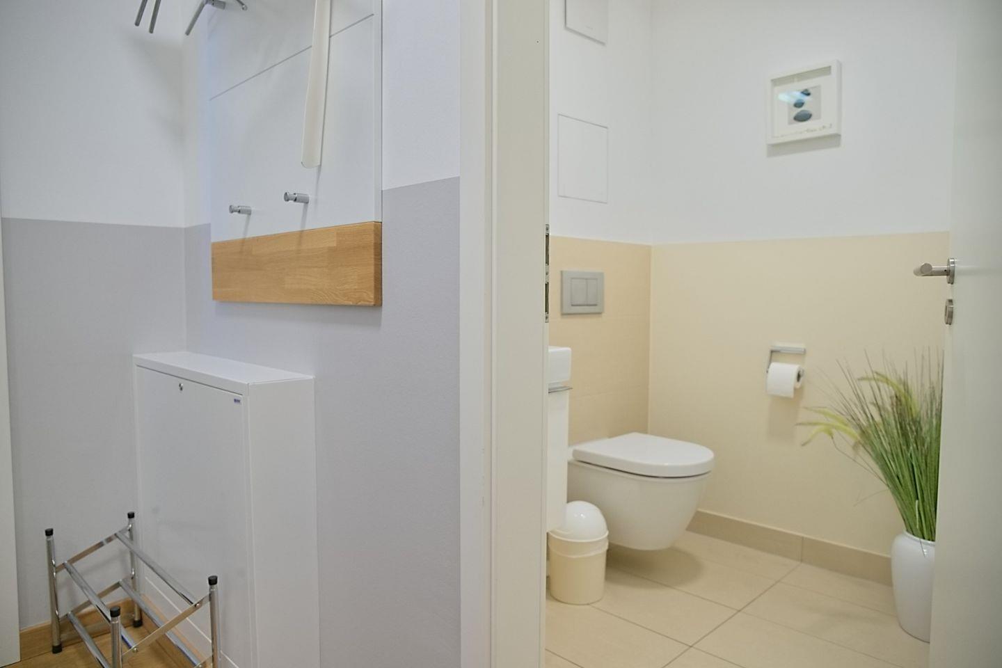 Nach betreten der Wohnung stehen Sie in dem Flur, von dem Sie Zugang zum Gäste- WC haben.