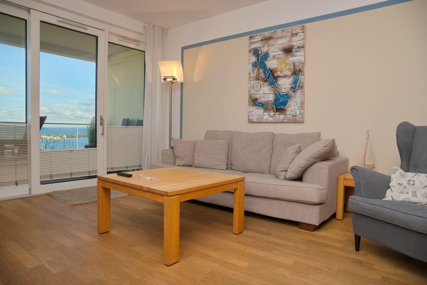 Der möblierte Balkon lädt zum verweilen ein und hat einen traumhaften Blick über die Lübecker Bucht, vom Yachthafen bis zur Seebrücke.