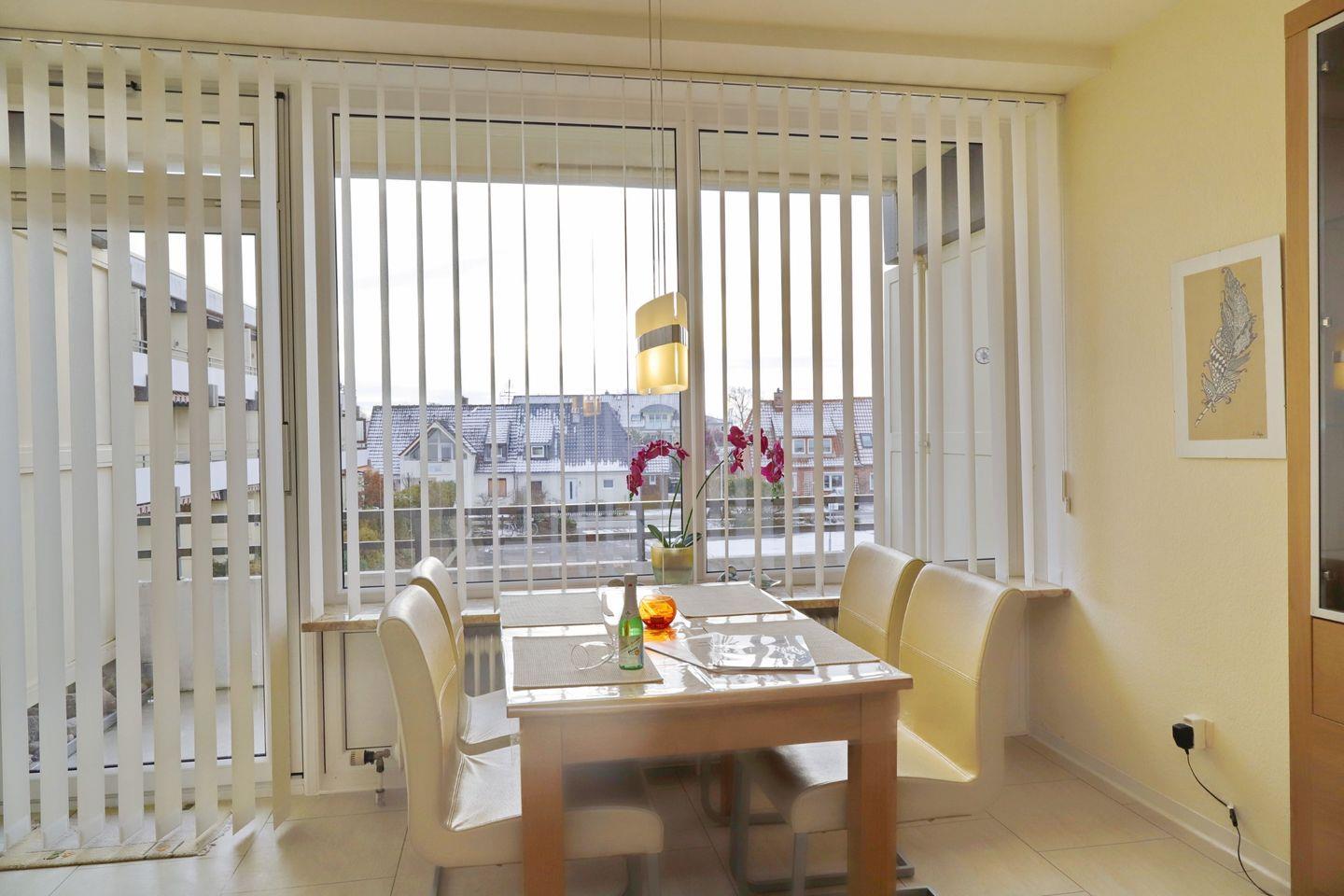 Geschmackvoll eingerichtete helle Ferienwohnung mit Südbalkon in ruhiger Lage nur wenige Meter vom Sandstrand und der schönen Promenade sowie dem Zentrum entfernt.