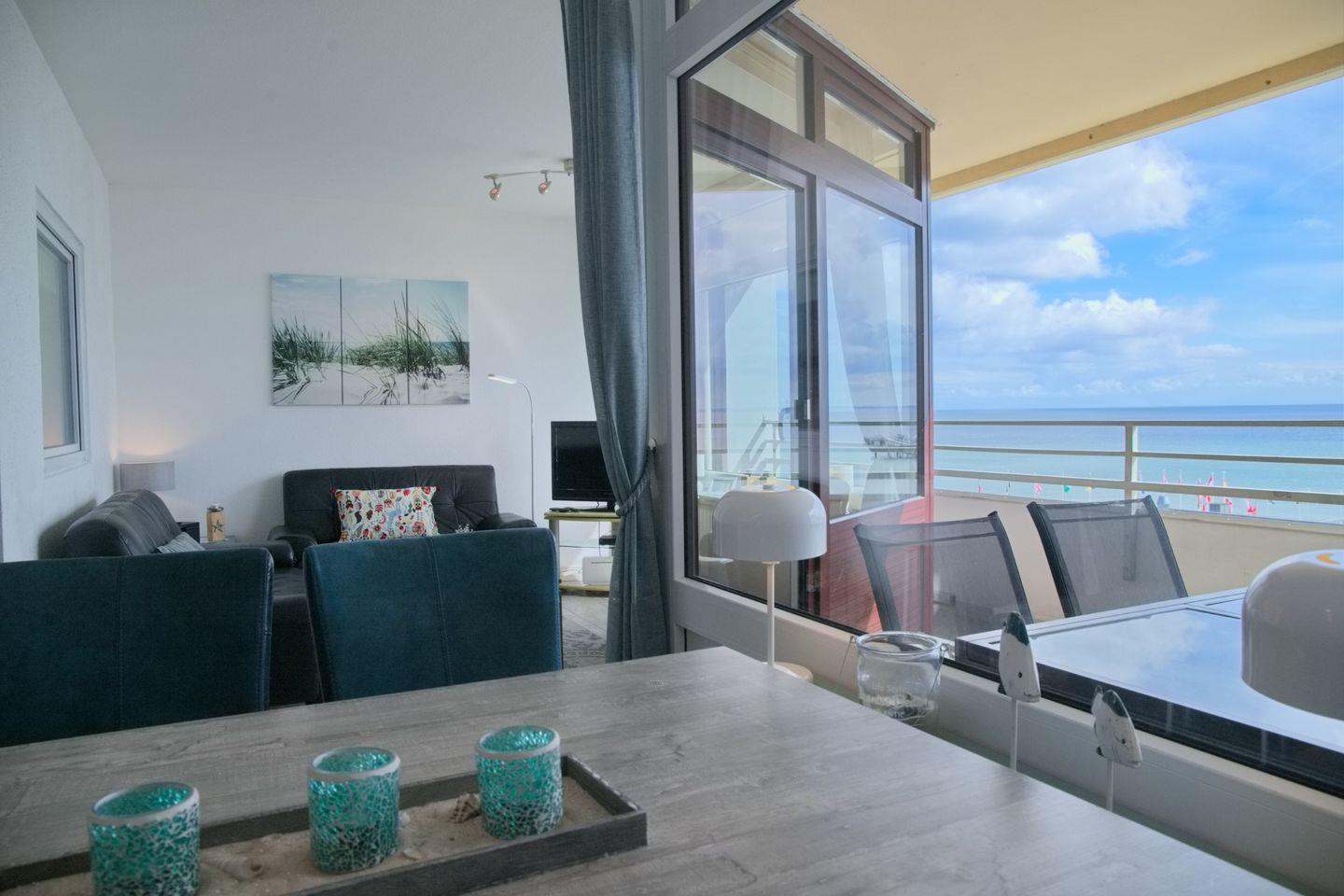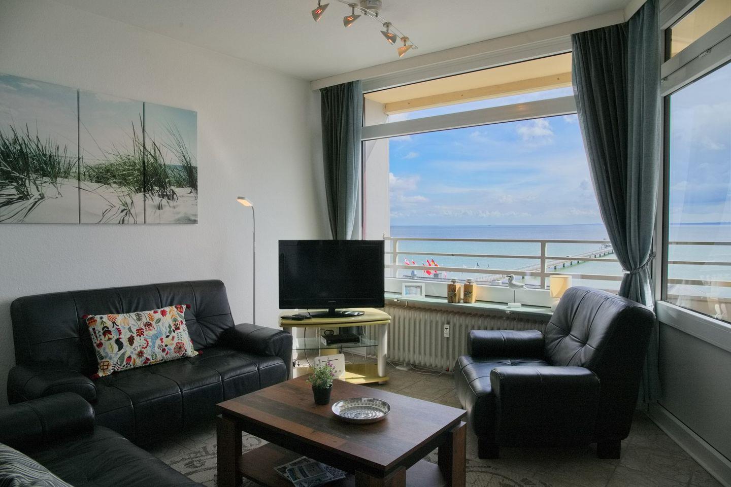 Sehr schöne Ferienwohnung mit großem möbliertem Südbalkon und 100% Blick über die Lübecker Bucht in Zentraler Lage. Ein Steinwurf zur Seebrücke.