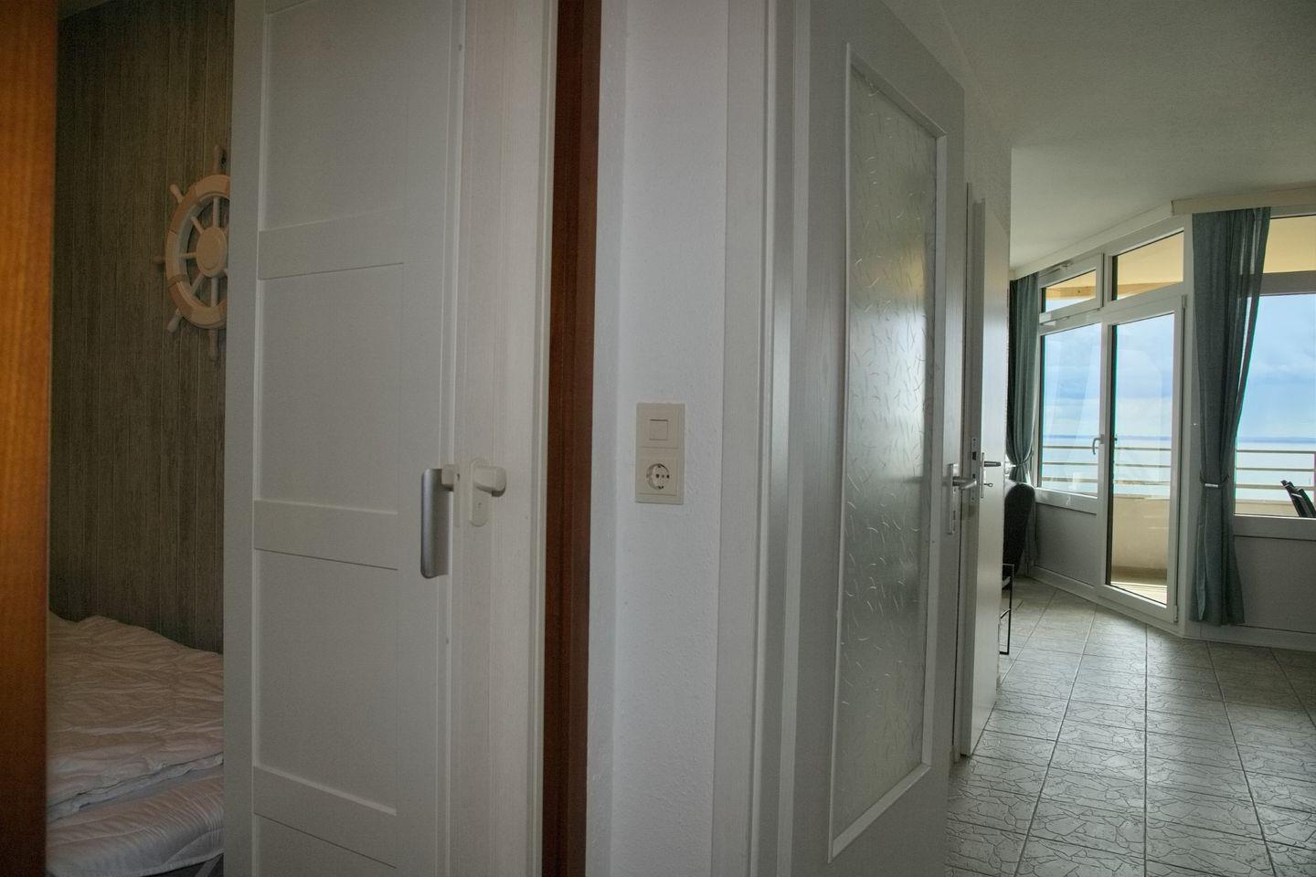 Ein Strandkorb steht leider nicht zur Verfügung, aber der Balkon bietet Ihnen den perfekten Ort, um die Sonne und den Blick auf das Meer zu genießen. Ein Fahrstuhl im Haus erleichtert Ihnen den Zugang zur Wohnung.