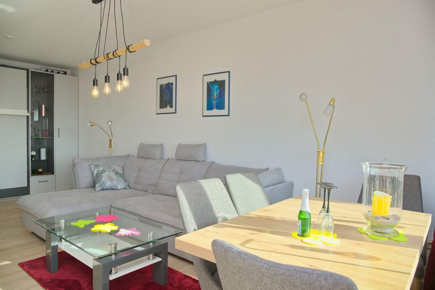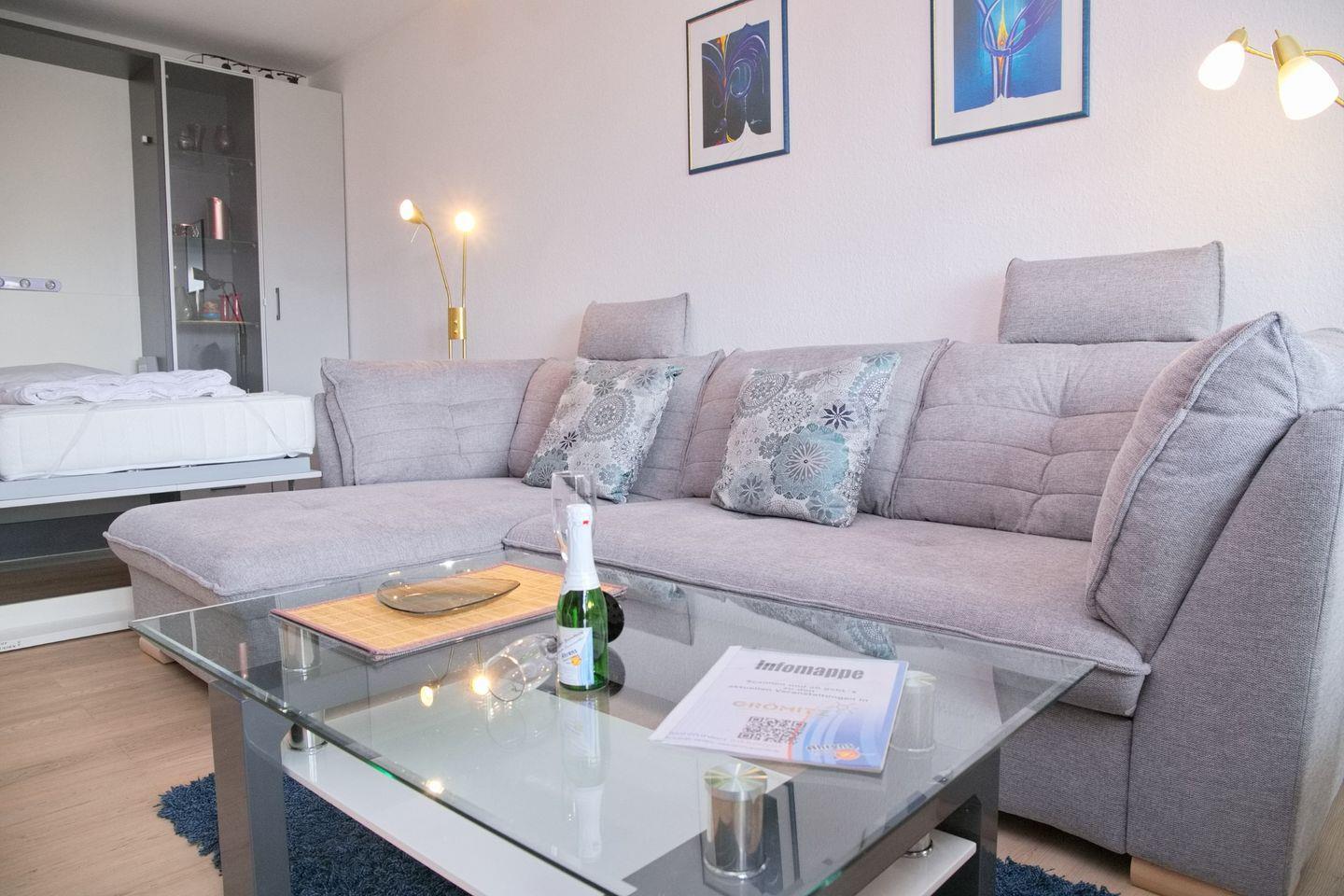 Moderne 2 Zimmer Ferienwohnung am bekannten Seebrückenvorplatz und Südbalkon.
