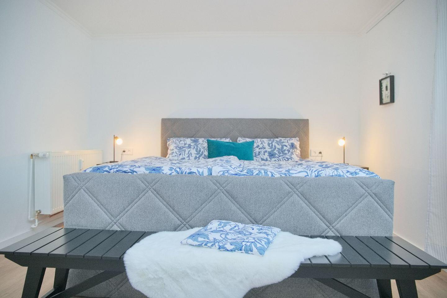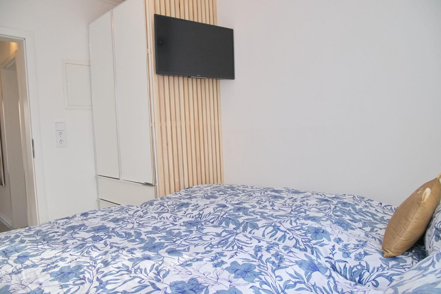 Das Schlafzimmer bietet höchsten Komfort mit einem großzügigen Boxspringbett (180x200 cm) mit durchgehendem Topper. Der Kleiderschrank bietet ausreichend Stauraum, und auch hier gibt es einen Flachbild-TV, um den Tag gemütlich ausklingen zu lassen. Ein Kinderreisebettchen passt ebenfalls problemlos in dieses Zimmer.