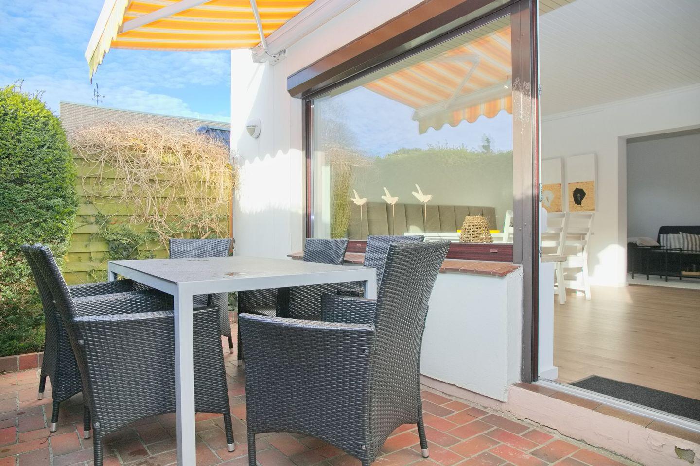 Diese wunderschöne 3-Zimmer-Wohnung im Erdgeschoss bietet komfortables Wohnen mit einer möblierten Süd-/Westterrasse, die nicht einsehbar ist und mit einer elektrischen Markise ausgestattet ist – ideal für sonnige Nachmittage und entspannte Abende im Freien.