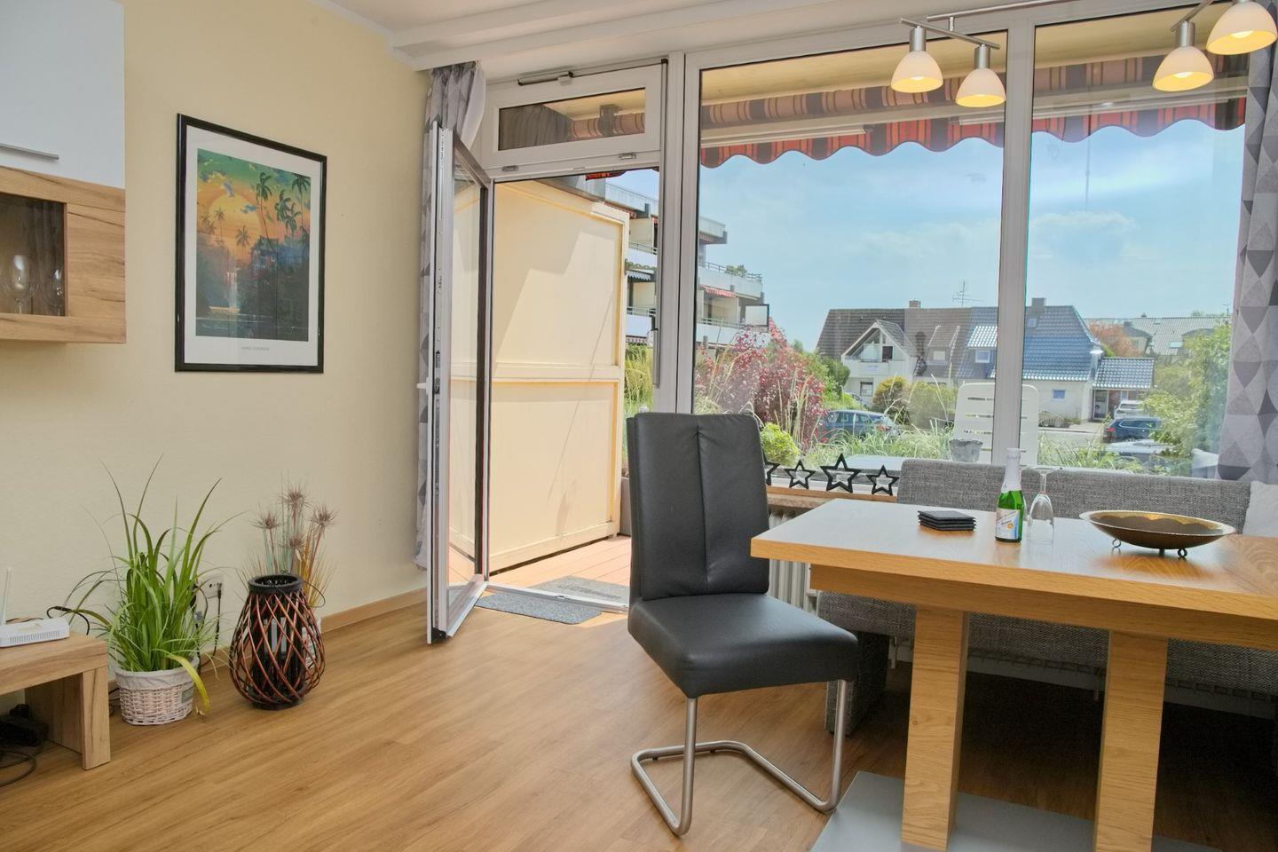 Schöne helle Ferienwohnung mit möblierter Terrasse, in Zentrumsnaher Lage, nur einen Steinwurf vom feinen Sandstrand und der Promenade entfernt.