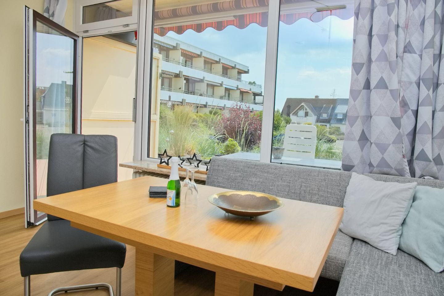 Dank der zentralen Lage der Wohnung erreichen Sie den Strand, die Promenade, Einkaufsmöglichkeiten und verschiedene Restaurants und Bäcker in wenigen Gehminuten.