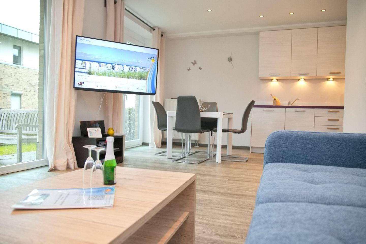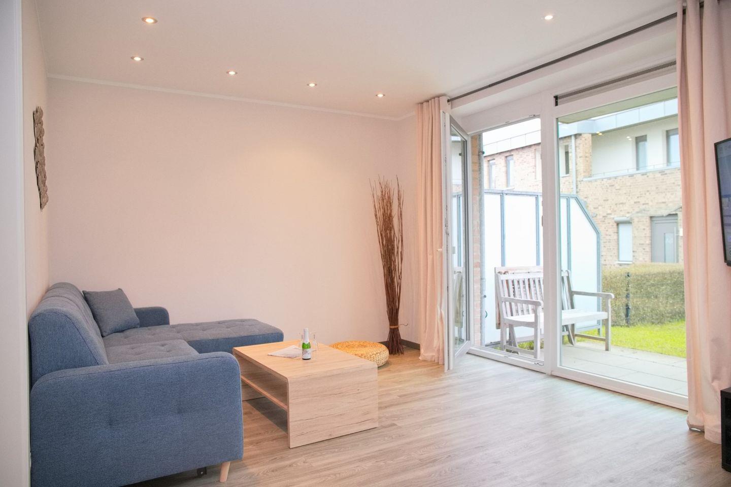 Diese großzügige 3-Zimmer-Ferienwohnung im Erdgeschoss mit möblierter Terrasse und Garten ist in einer stilvoll angelegten Wohnanlage gelegen.