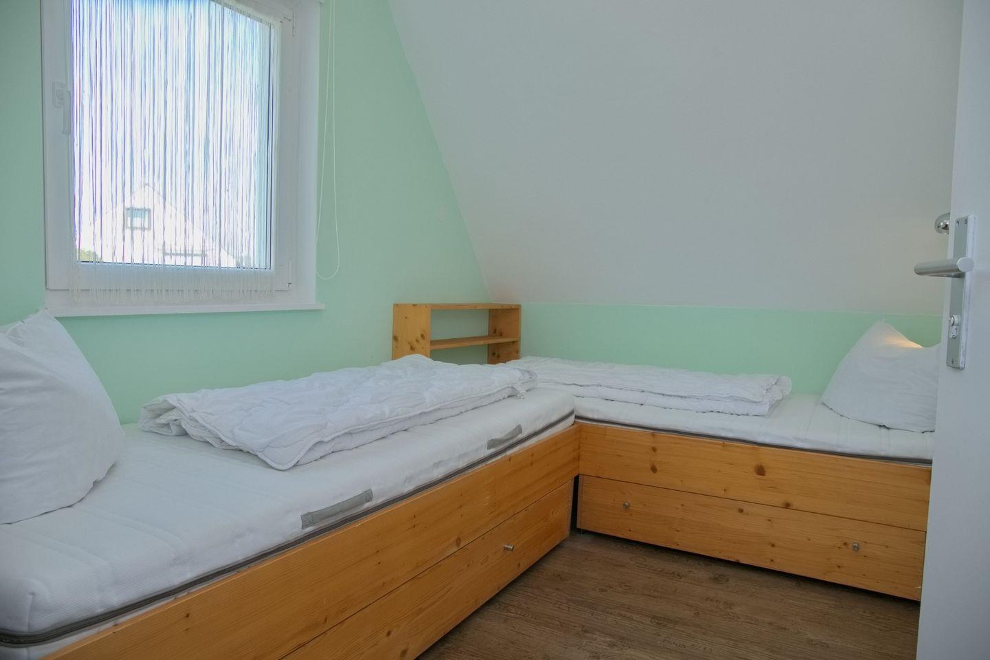 Die beiden Schlafzimmer befinden sich im Obergeschoss. Ein Schlafzimmer verfügt über ein Doppelbett und das zweite Schlafzimmer hat zwei Einzelbetten.