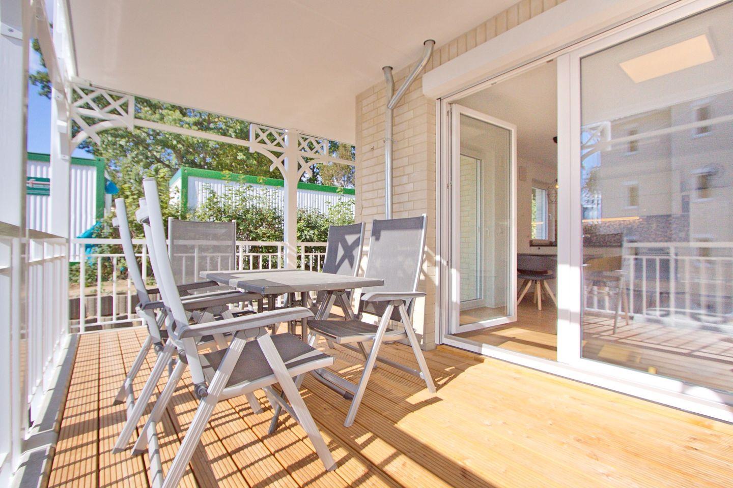 Auf Ihrem schönen Süd-/Westbalkon mit Gartenmöbeln blicken Sie in Richtung des angrenzenden Kurpark.