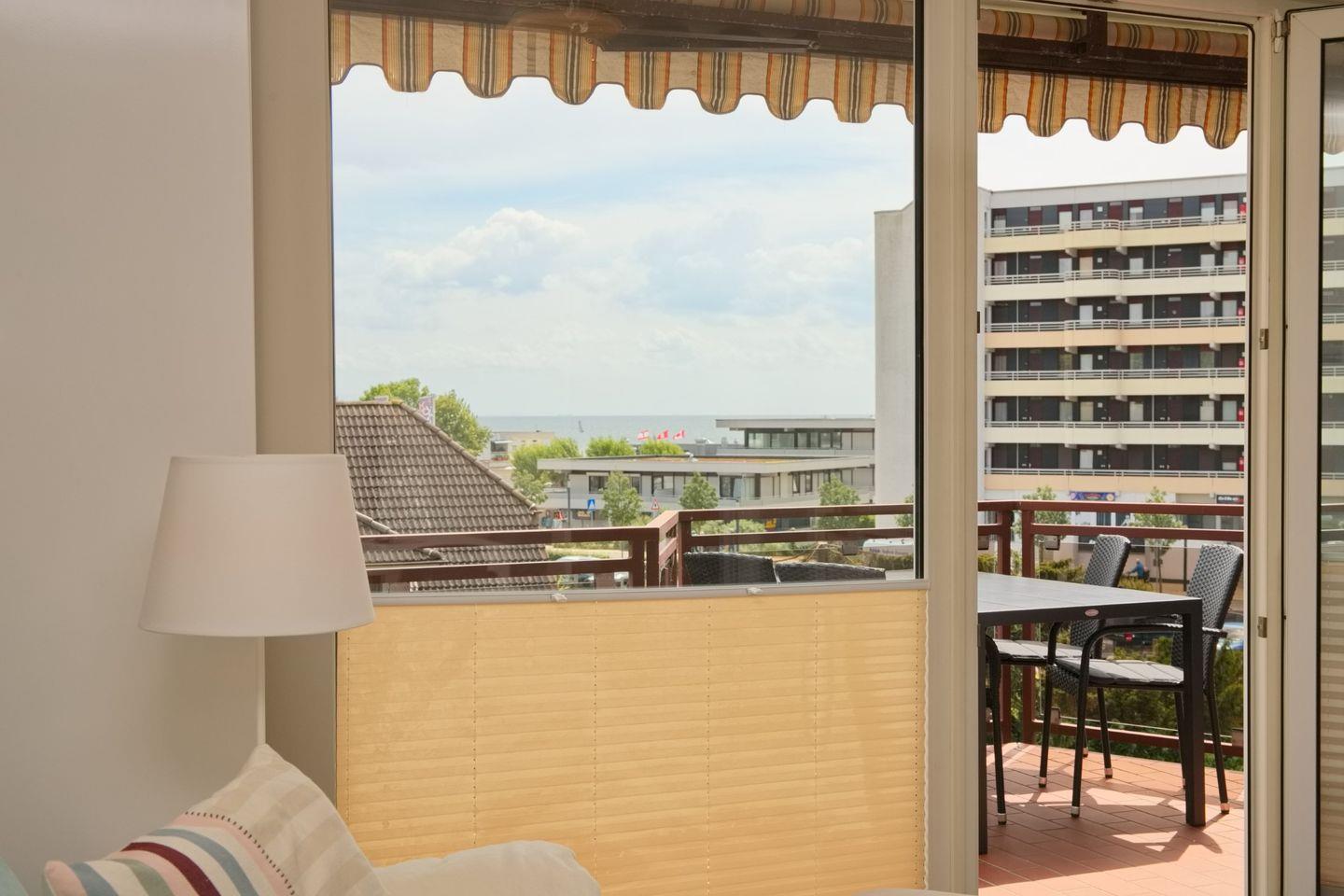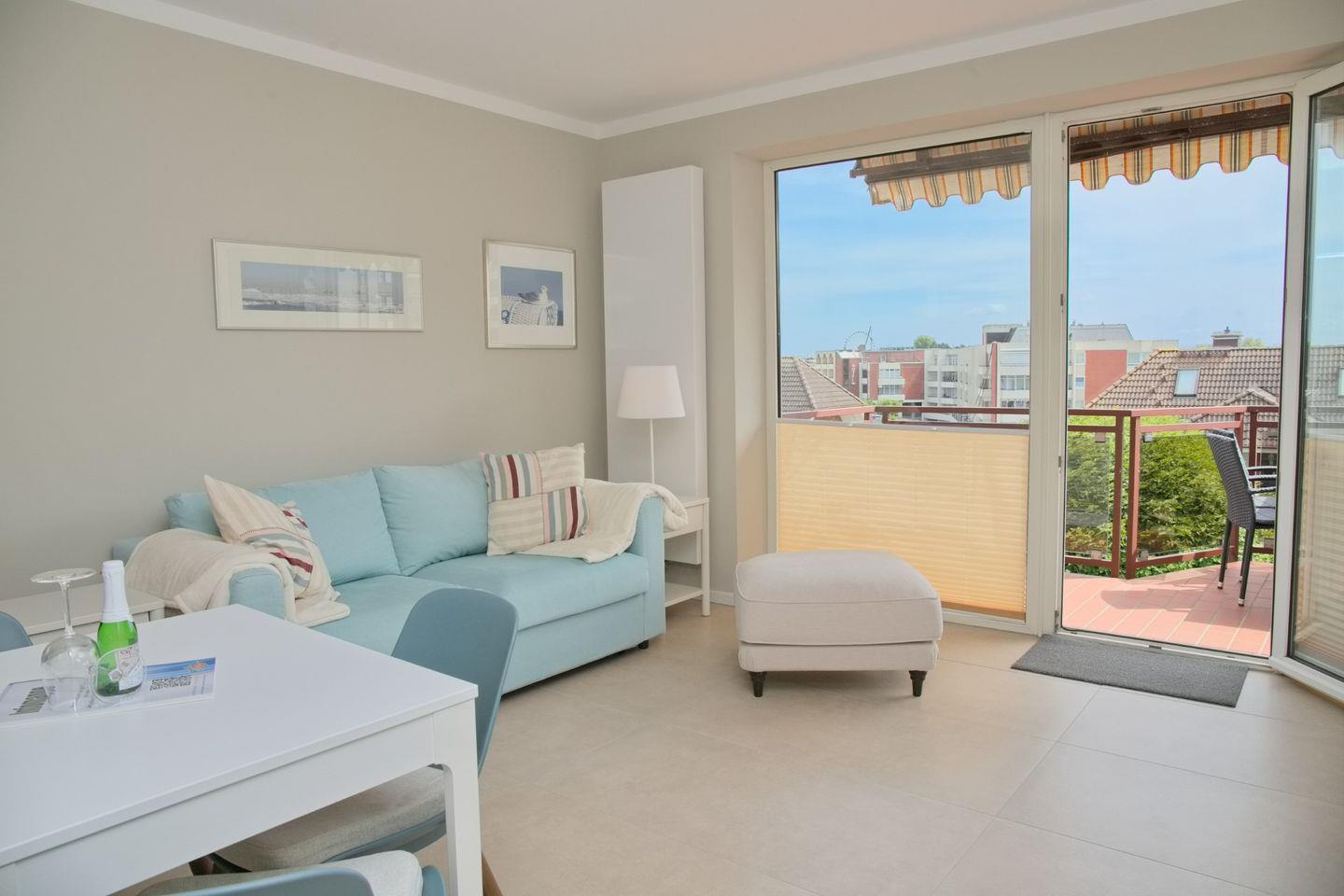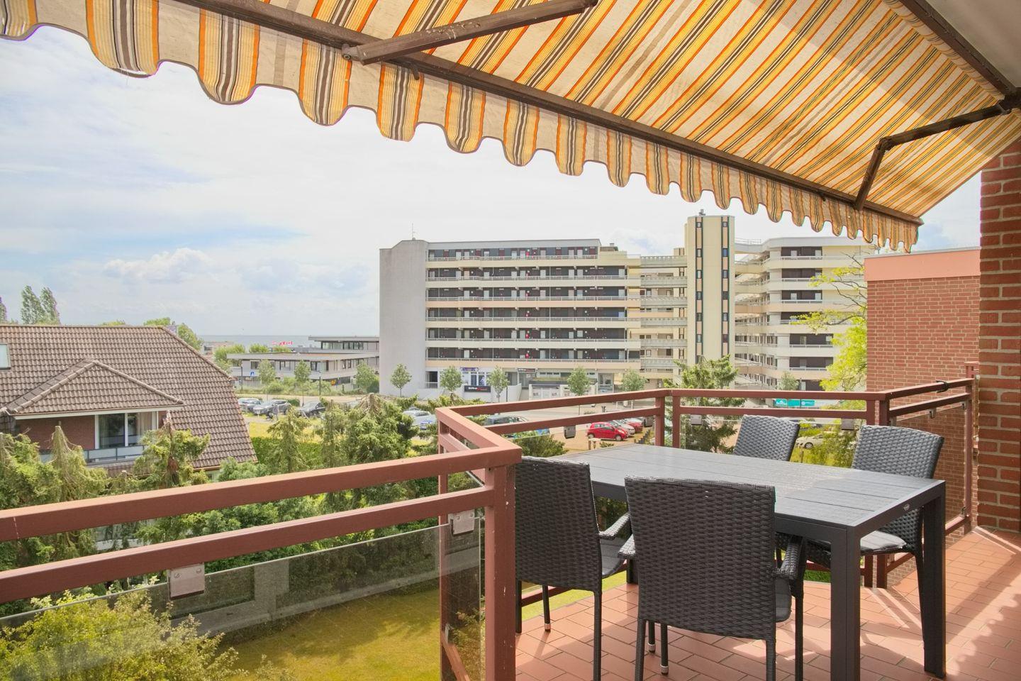 Frisch sanierte zwei Zimmerwohnung, direkt am Deich mit möblierten Balkon mit Markise und Meerblick.