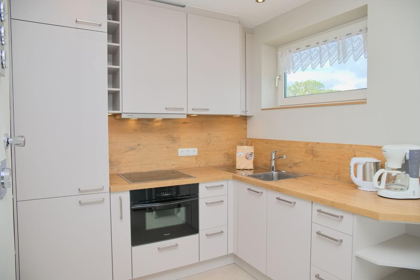 Die moderne, offene Küche lässt keine Wünsche offen: Cerankochfeld, Backofen, Kühlschrank mit Gefrierfach, Spülmaschine, Mikrowelle, Kaffeemaschine, Wasserkocher und Toaster stehen Ihnen zur Verfügung. So können Sie bequem Ihre Lieblingsgerichte zubereiten.