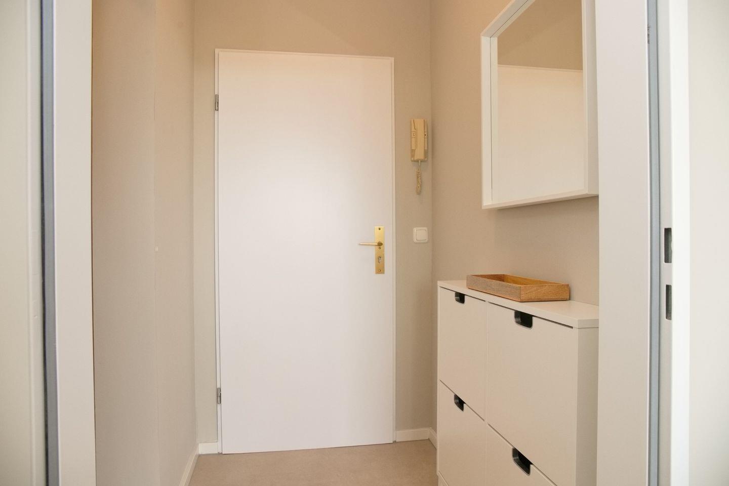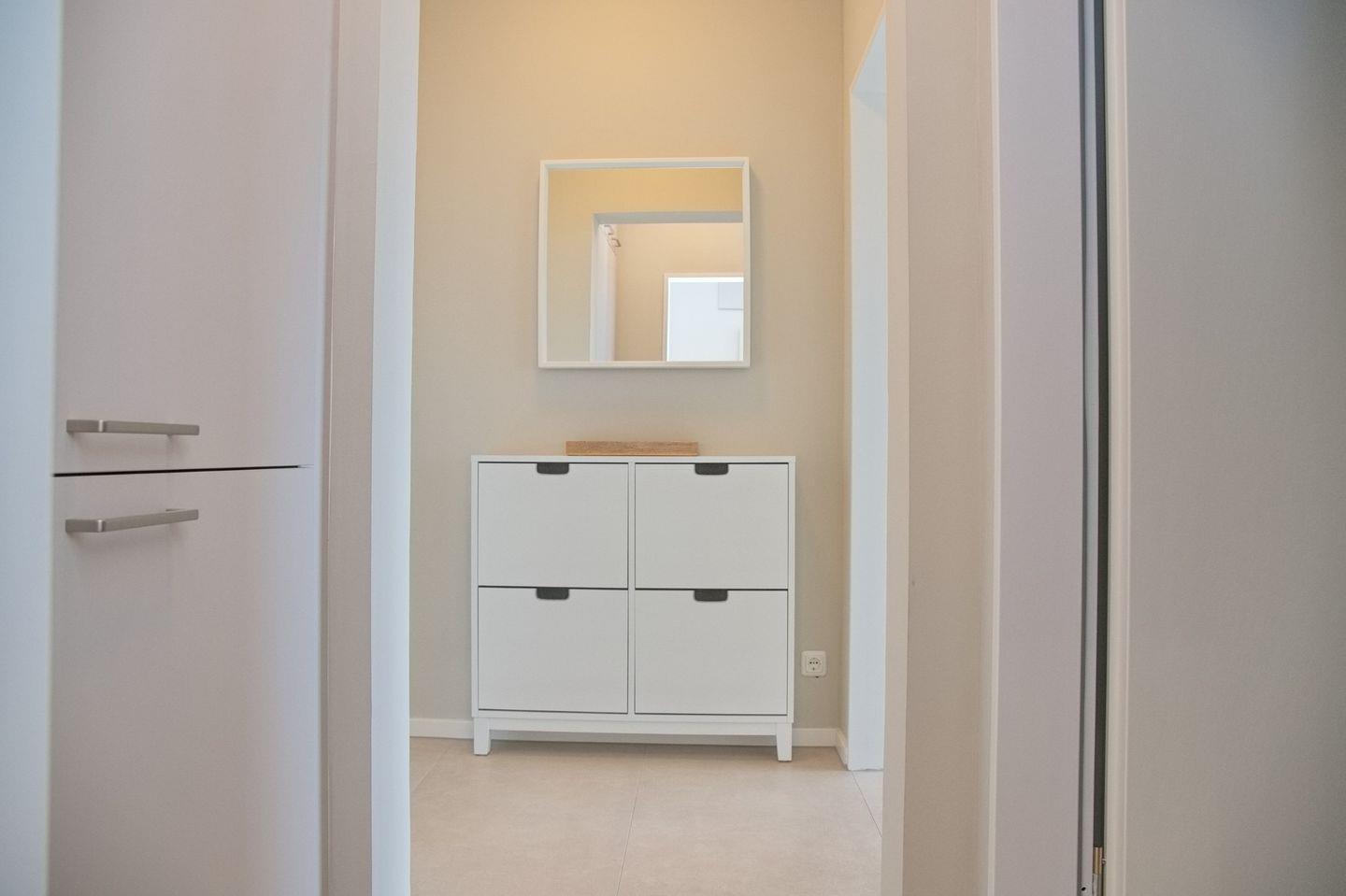 Das moderne Bad ist mit einer Dusche, einem WC sowie einem Waschtisch mit Spiegel und Beleuchtung ausgestattet, sodass Sie sich rundum wohlfühlen können. Im Flur finden Sie einen praktischen Schuhschrank, einen Spiegel sowie einen Einbauschrank für zusätzlichen Stauraum.