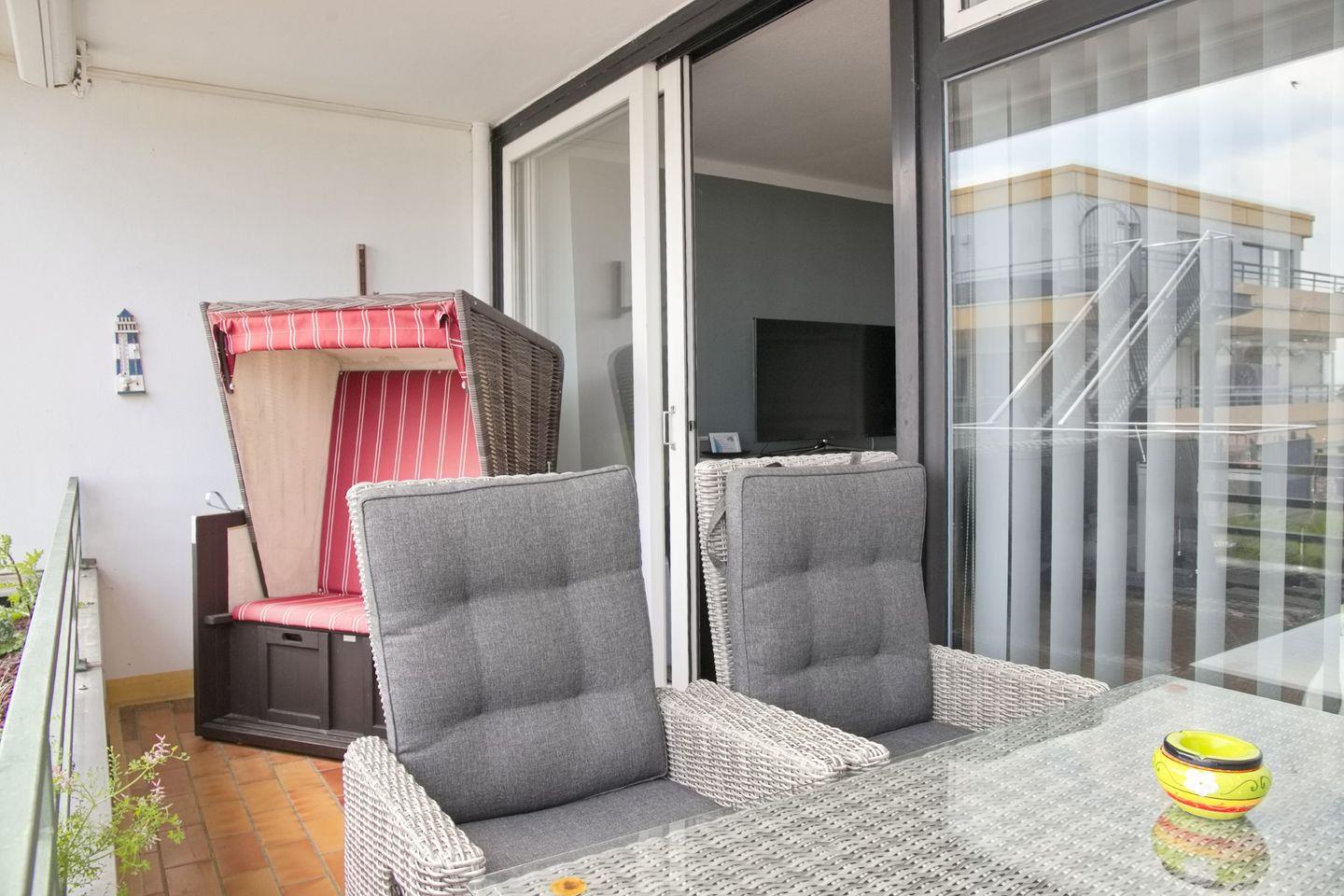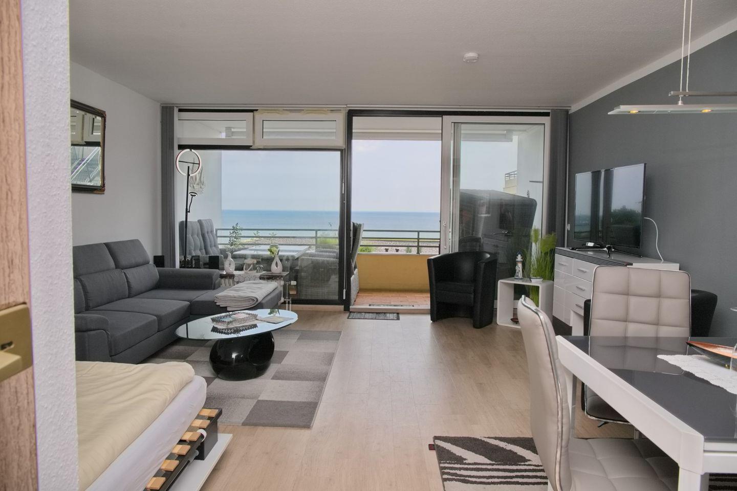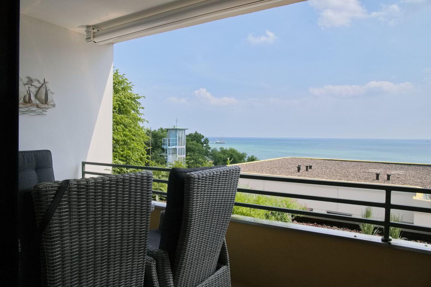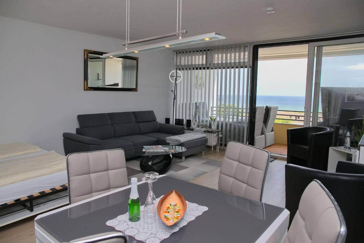Diese moderne Ferienwohnung liegt unmittelbar an der Promenade und bietet Ihnen mit möbliertem Südbalkon einen herrlichen Blick über die Lübecker Bucht. Das großzügige Wohnzimmer bietet Ihnen eine Couchgarnitur und zwei Sessel für gemütliche Abende. Zur Unterhaltung steht Ihnen ein Flach-TV und eine Stereoanlage zur Verfügung. Eine Schlafmöglichkeit in Form eines Schrankbettes finden Sie ebenfalls im Wohnzimmer. Der Essbereich bietet genügend Platz. Die separate Einbauküche ist vollausgestattet und lässt keine Wünsche offen. Das Schlafzimmer ist ausgestattet mit einer hochwertigen Schlafcouch für 2 Personen. Ein modernes Duschbad mit WC und Waschtisch sind vorhanden.