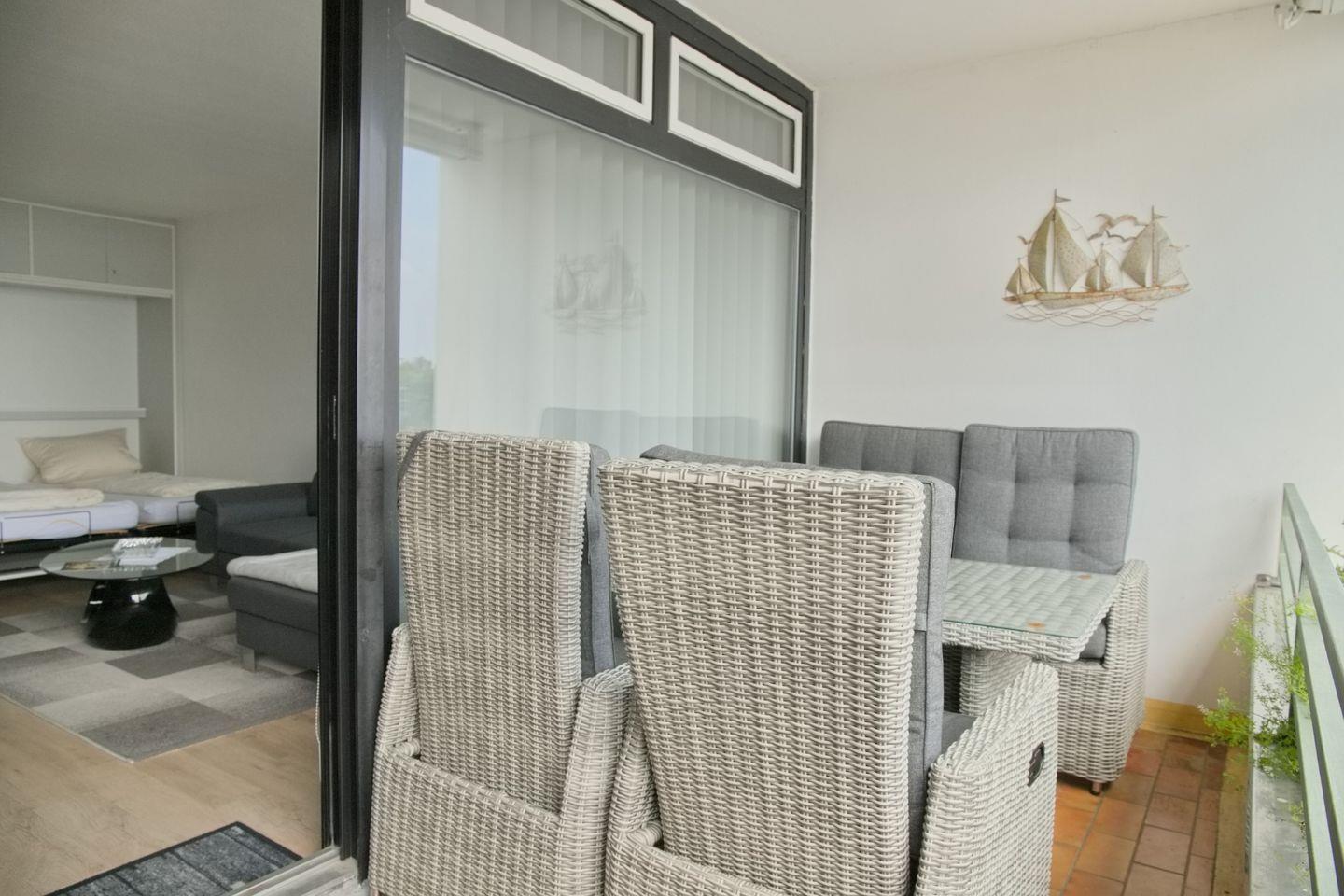 Sehr schöne Moderne gut ausgestattete Ferienwohnung für 4 Personen mit möblierten Südbalkon und 100 % Seeblick. möblierter Balkon in Südlage