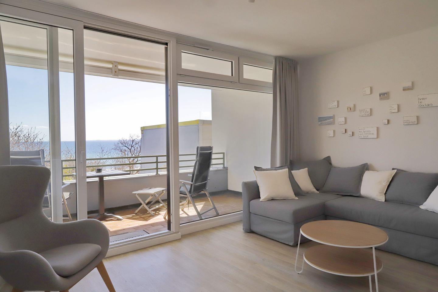 Moderne 3 Zimmer Ferienwohnung für 4 Personen mit Meerblick. Direkt an der Strandpromenade gelegen und nur wenige Meter vom weißen Ostseestrand und der lebhaften Promenade entfernt.