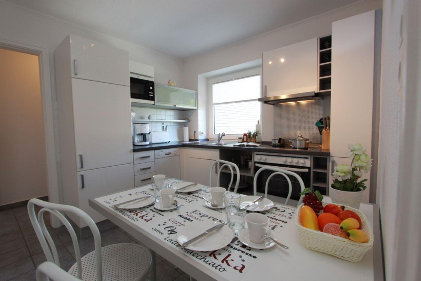 Die voll ausgestattete Küche bietet neben einem Essbereich für 4 Personen, ein Cerankochfeld, einen Backofen, einen Kühlschrank mit 3* Gefrierfach, einen Geschirrspüler, eine Kaffeemaschine, einen Toaster, einen Eierkocher sowie einen Wasserkocher.