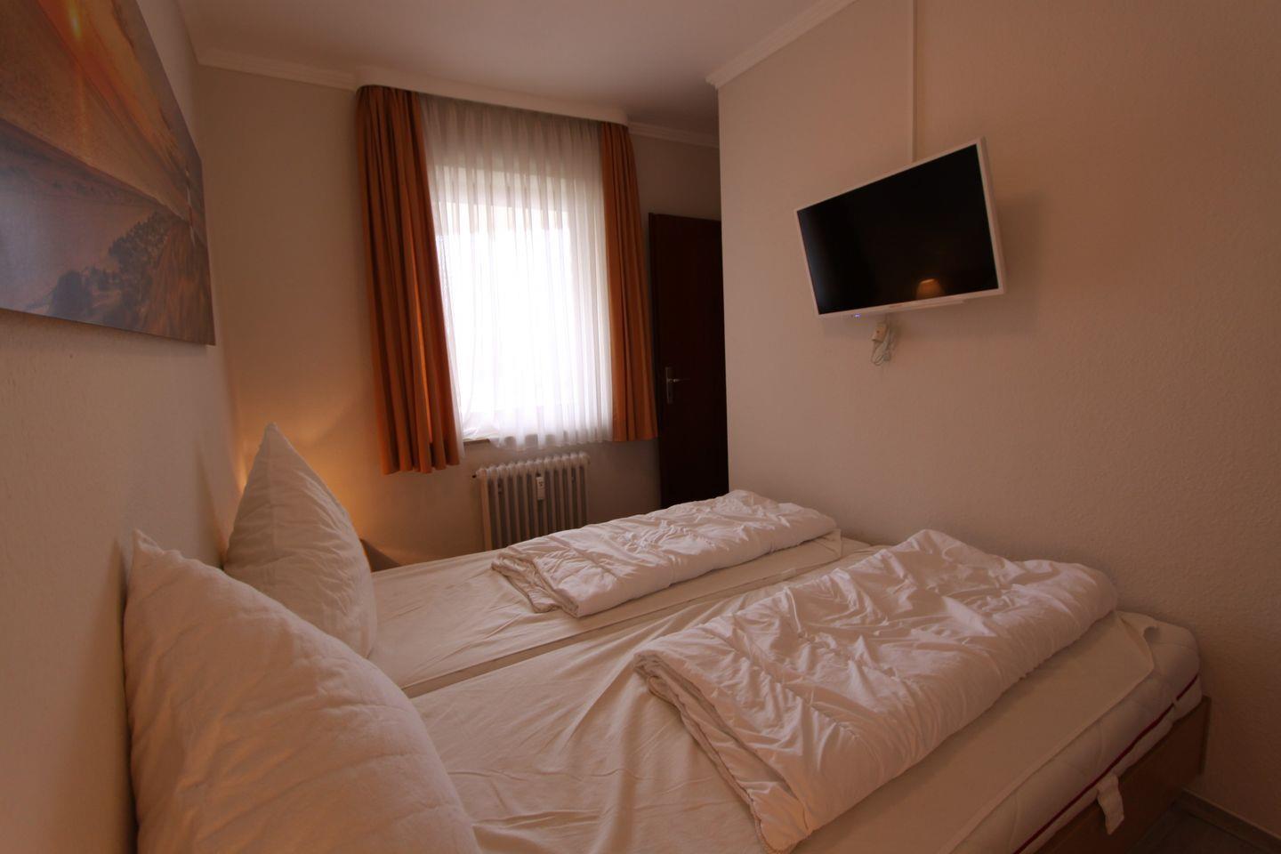 Liebevoll eingerichtete 2-Zimmerwohnung (ca. 47 qm) mit kostenfreiem WLAN in der 2. Etage mit möbliertem Balkon in Südwestlage. Durch den Flur gelangen Sie direkt in das geräumige Wohnzimmer, hier gibt es eine Schlafcouch für 2 Personen, einen Flatscreen, ein Radio mit CD- Player und einen Essbereich mit 4 Stühlen. Die Küche ist durch einen kleinen Tresen vom Wohnraum abgetrennt und ist mit einem Ceranfeld mit Backofen, Geschirrspüler, einem Kühlschrank mit Gefrierschrank, einer Mikrowelle, einer Kaffeemaschine, Wasserkocher und Toaster ausgestattet. Das Schlafzimmer ist durch 2 Türen begehbar. Hier befinden sich ein Doppelbett, zwei Nachttische und ein Kleiderschrank. Auch hier steht Ihnen ein Flatscreen zur Verfügung. Die Wohnung verfügt über ein Duschbad/WC.