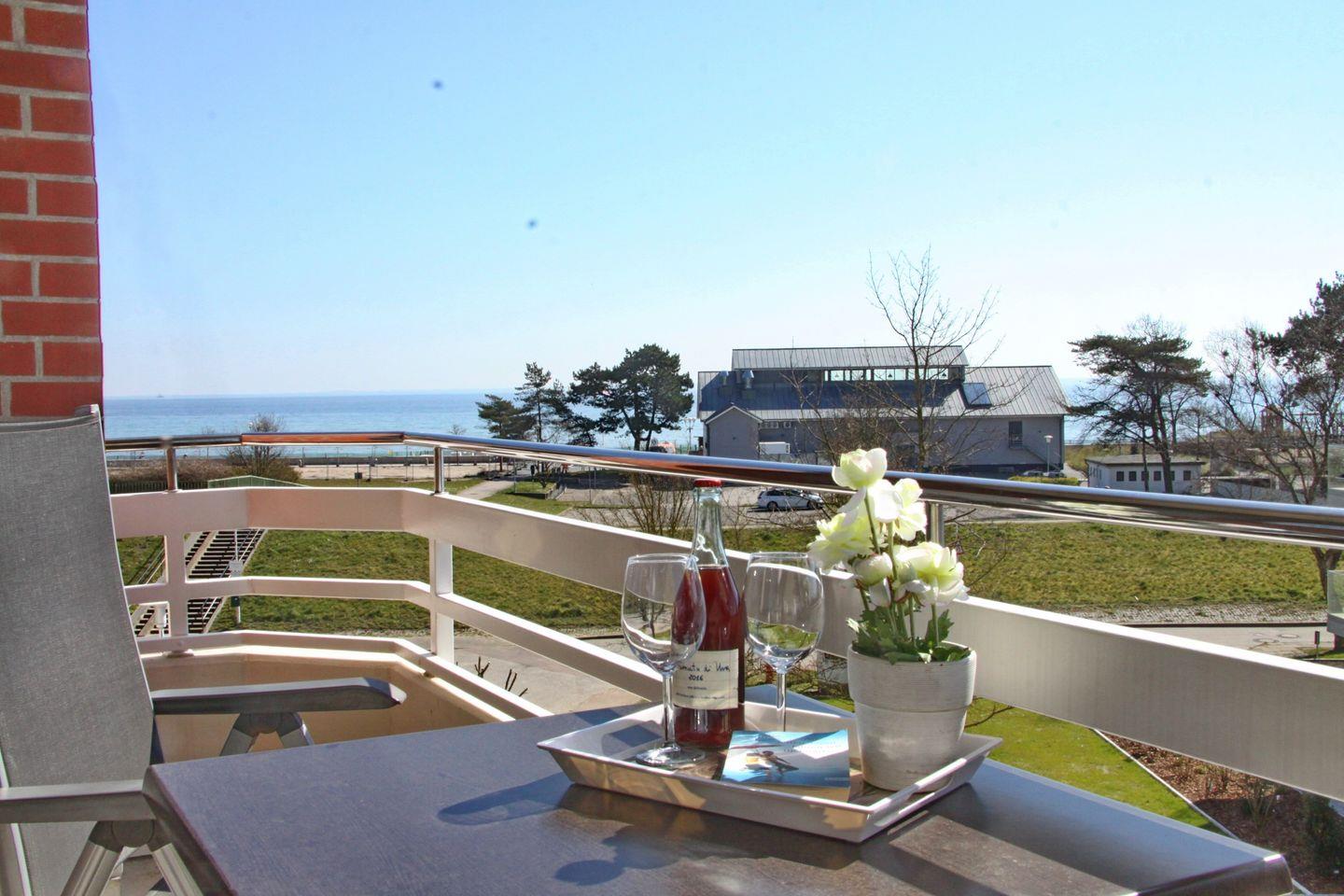Sehr schöne 2-Zimmer-Wohnung in der 3. Etage mit möbliertem Balkon in Südwestrichtung mit Markise und Teilseeblick.