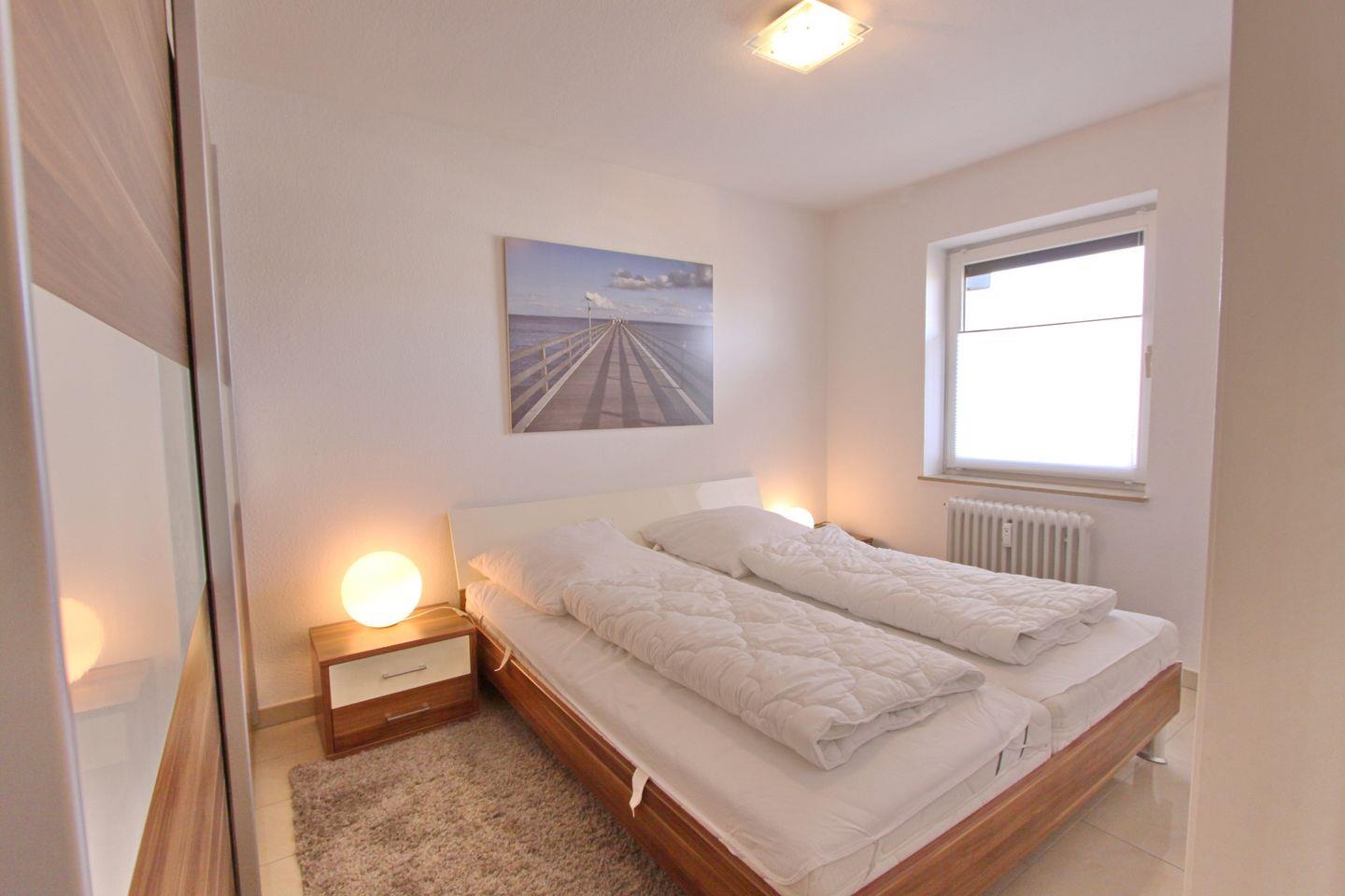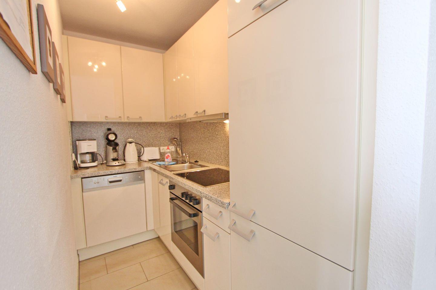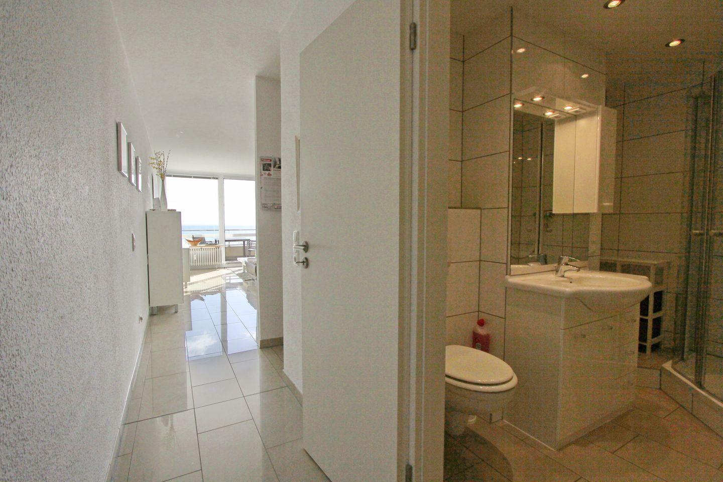 Sehr schöne Ferienwohnung in der 4. Etage mit möbliertem Süd-Balkon und traumhaftem Seeblick. Im Wohnzimmer gibt es eine Leder Couch für 2 Personen, einen Flach-TV, Radio mit CD Player und eine Essecke mit 6 Stühlen. Die separate Küche ist mit einem Cerankochfeld mit Backofen, einem Kühlschrankmit Gefrierfach, einem Geschirrspüler, einer Kaffeemaschine, einem Wasserkocher und einem Toaster ausgestattet. Im Schlafzimmer stehen ein Doppelbett, zwei Nachttische und ein großer Kleiderschrank. Die Wohnung verfügt über ein modernes neues Duschbad/WC. W-LAN steht dem Gast kostenlos zur Verfügung. Das Rauchen ist hier nicht erlaubt. Auf dem möblierten Balkon darf gerne geraucht werden. Ein Hund ist in dieser Wohnung nicht erlaubt. Die Wohnung ist für 2 Personen eingerichtet. Dem Gast steht ein PKW-Stellplatz in einer Doppelgarage zur Verfügung.