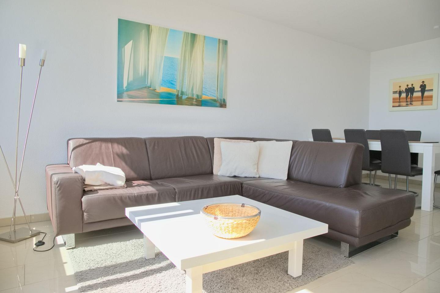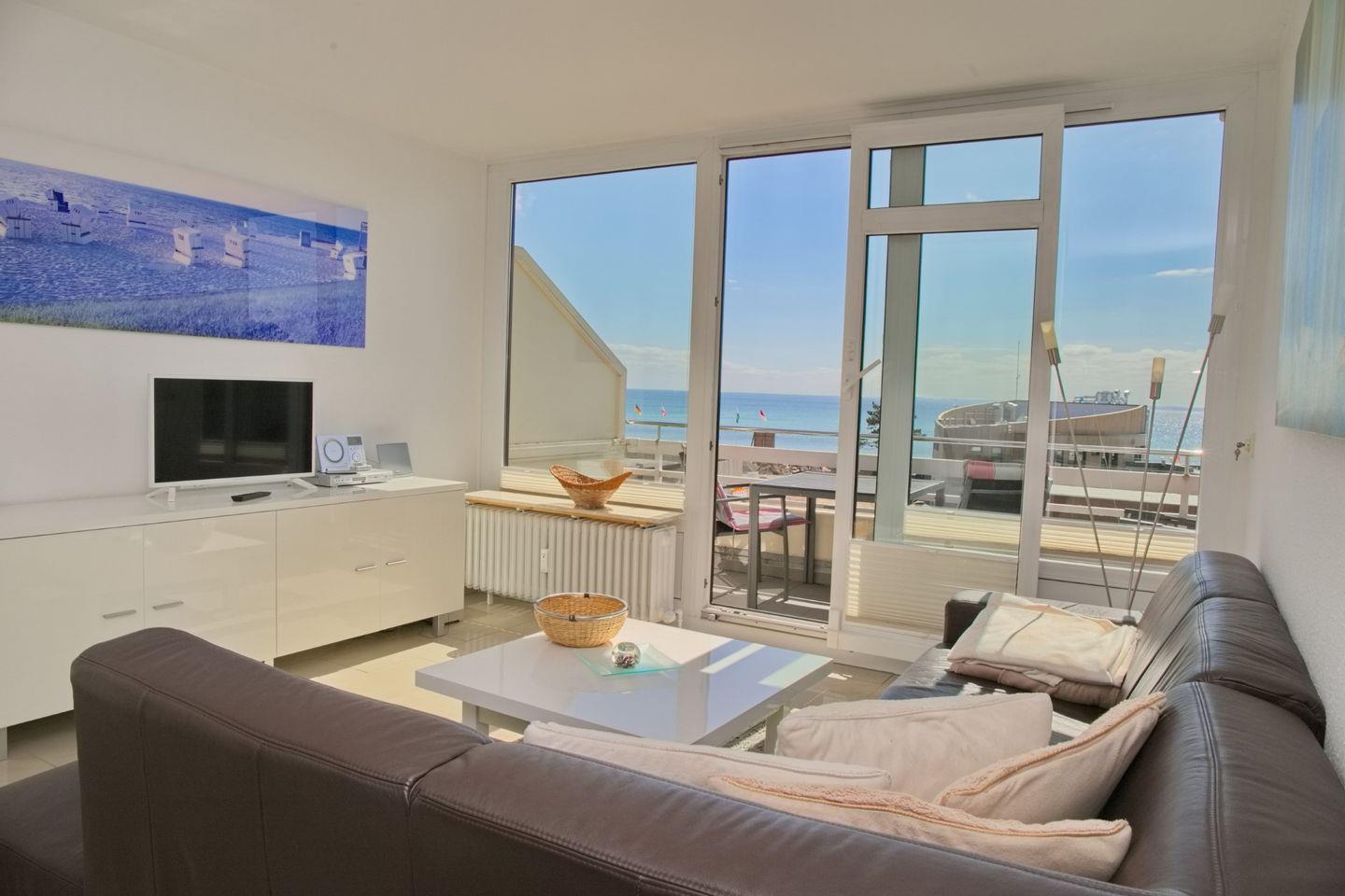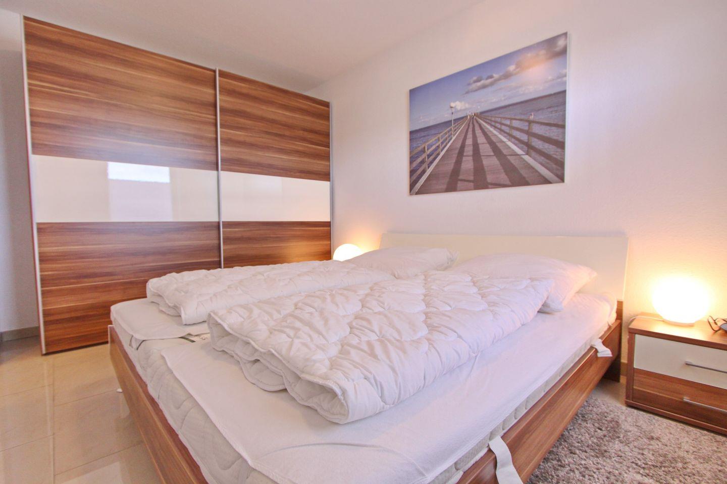 Sehr schöne Ferienwohnung in der 4. Etage mit möbliertem Süd-Balkon und traumhaftem Seeblick. Im Wohnzimmer gibt es eine Leder Couch für 2 Personen, einen Flach-TV, Radio mit CD Player und eine Essecke mit 6 Stühlen. Die separate Küche ist mit einem Cerankochfeld mit Backofen, einem Kühlschrankmit Gefrierfach, einem Geschirrspüler, einer Kaffeemaschine, einem Wasserkocher und einem Toaster ausgestattet. Im Schlafzimmer stehen ein Doppelbett, zwei Nachttische und ein großer Kleiderschrank. Die Wohnung verfügt über ein modernes neues Duschbad/WC. W-LAN steht dem Gast kostenlos zur Verfügung. Das Rauchen ist hier nicht erlaubt. Auf dem möblierten Balkon darf gerne geraucht werden. Ein Hund ist in dieser Wohnung nicht erlaubt. Die Wohnung ist für 2 Personen eingerichtet. Dem Gast steht ein PKW-Stellplatz in einer Doppelgarage zur Verfügung.