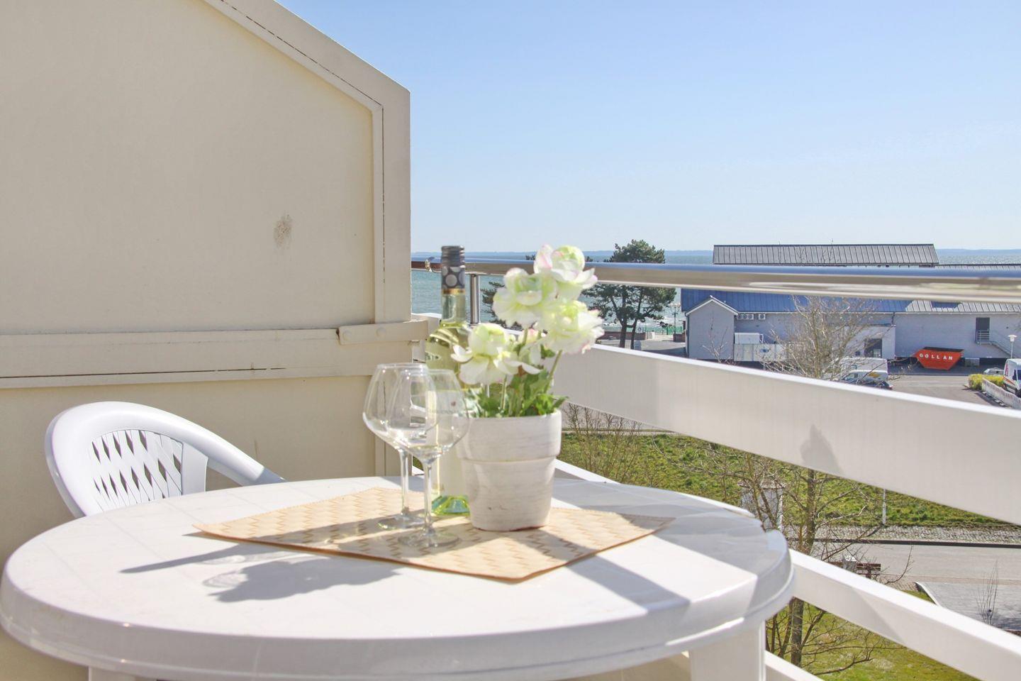 Ferienwohnung mit möbliertem Südwest-Balkon und Teilseeblick. Ihre Fell Nase ist hier herzlich willkommen. Inkl. Stellplatz in der Tiefgarage.