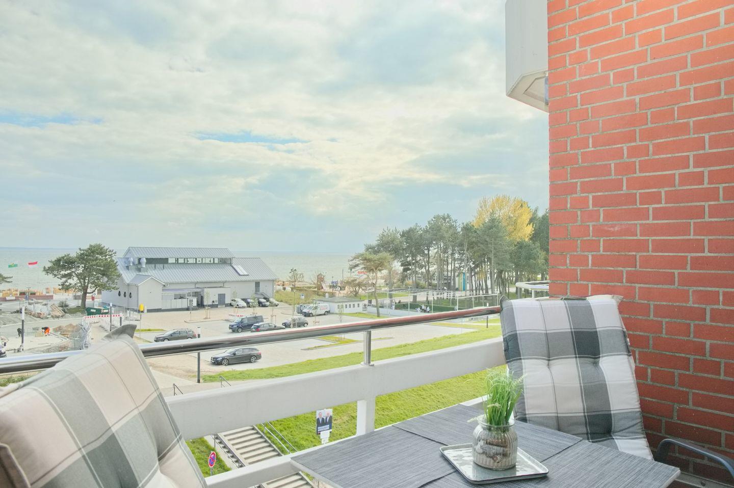 Moderne und stilvolle Ferienwohnung mit möbliertem Süd-Balkon und Markise sowie Seeblick. Nur wenige Meter zum feinen Sandstrand in Grömitz.