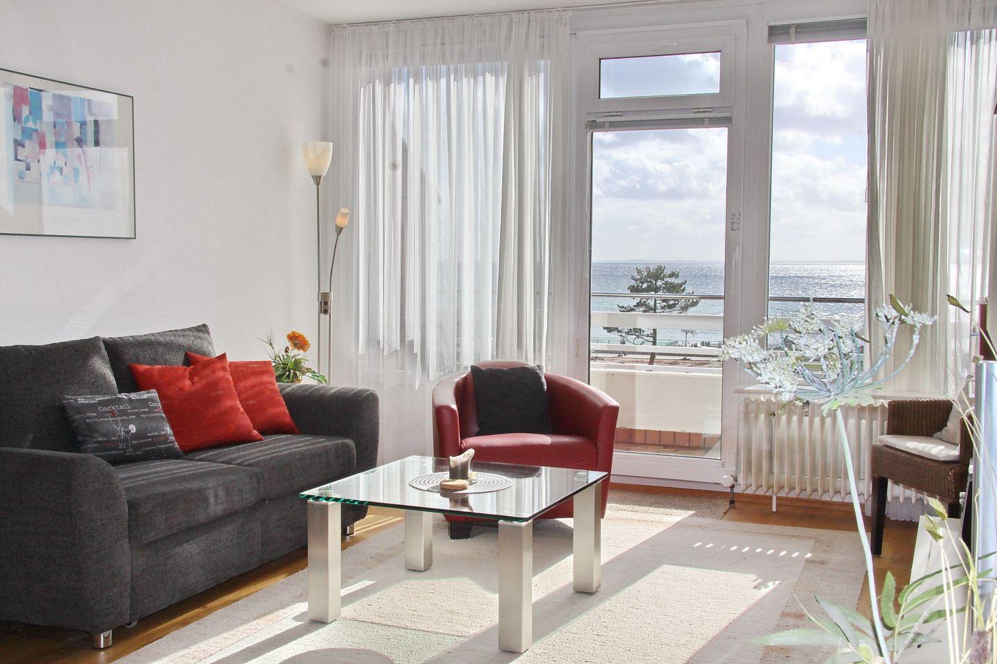 Sehr schöne und toll eingerichtete Ferienwohnung in der nähe zum Strand mit möbliertem Süd-Balkon (Markise) und Seeblick inkl. W-LAN Zugang.