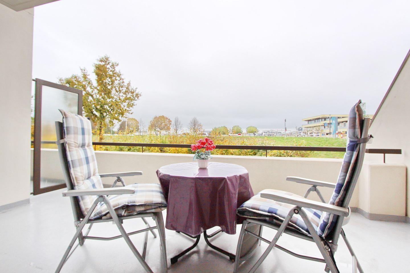 Der Balkon ist zur Deich/Seeseite ausgerichtet.