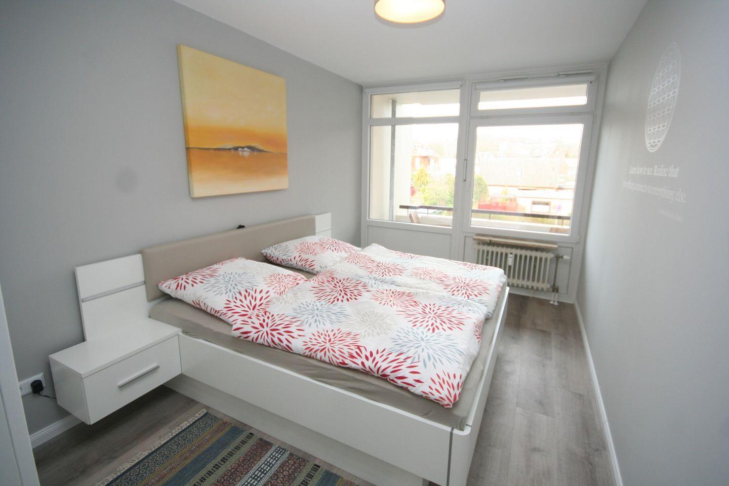Innovative und helle Ferienwohnung mit zwei Balkonen und Seeblick direkt hinter dem Deich, im Zentrum von Grömitz. Die Seebrücke liegt vor der "Tür".