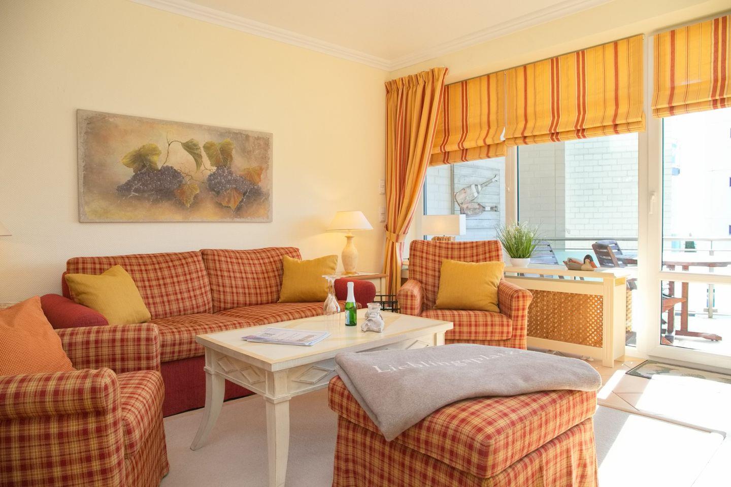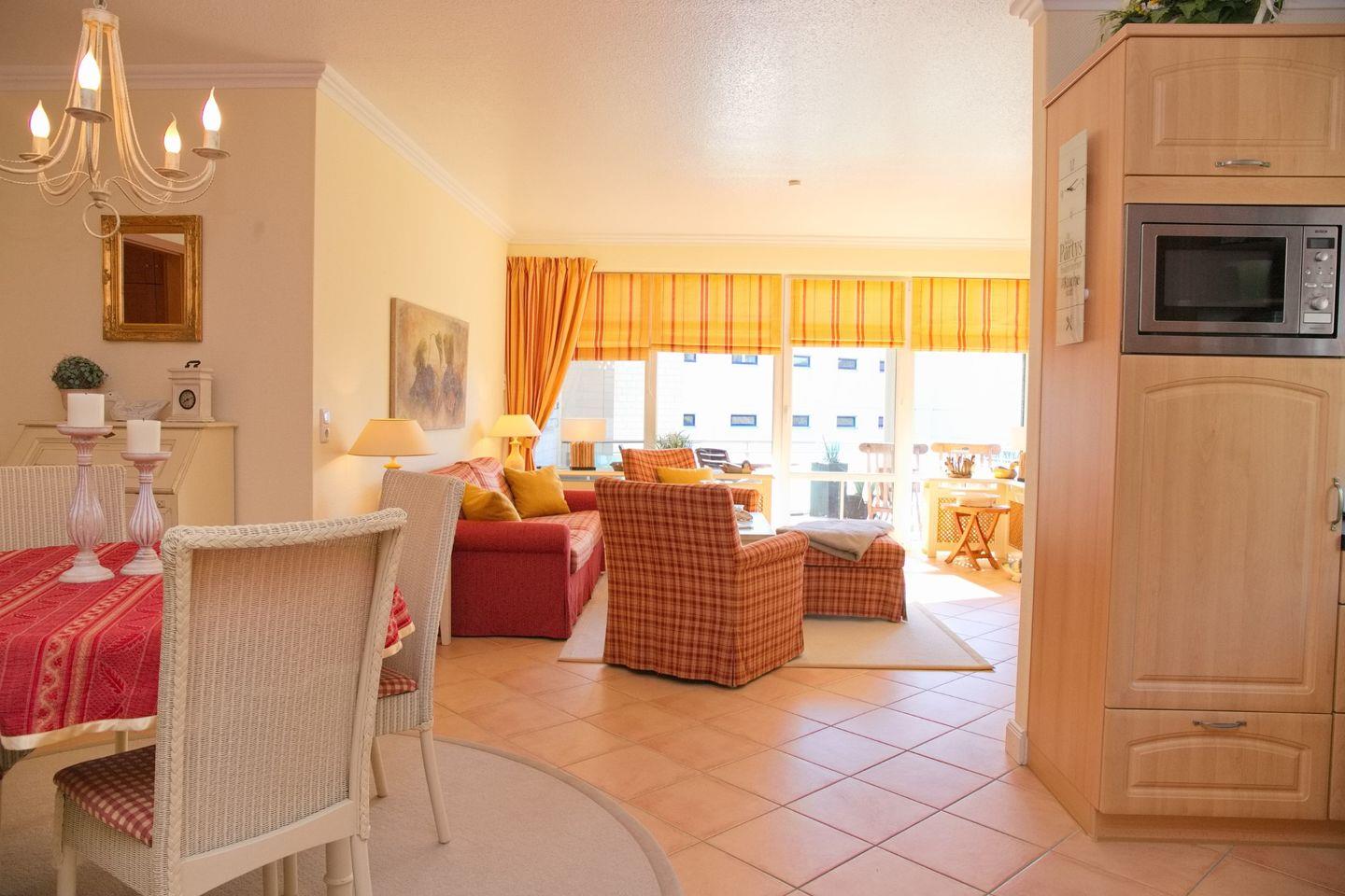 Das Wohnzimmer bietet Ihnen 1 Sofa, 2 Sessel, den Zugang zum Balkon, ein großer Flach TV, einen DVD- Player und eine Stereoanlage.