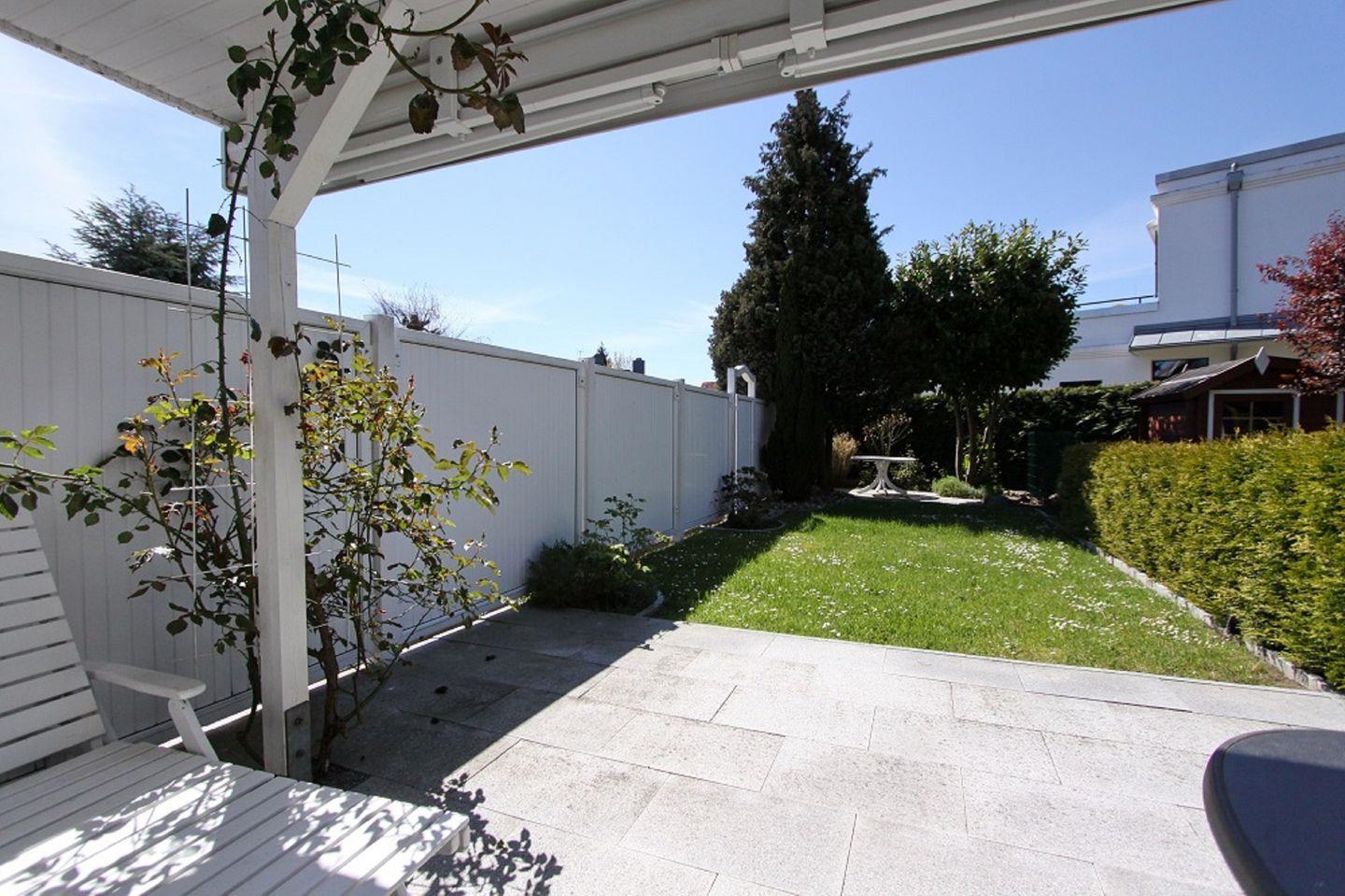 Auf der möblierten Terrasse mit Markise lassen sich herrliche Urlaubstage verbringen. Der eingezäunte Garten ist zur alleinigen Nutzung und kann durch einen Zugang von Außen betreten werden.