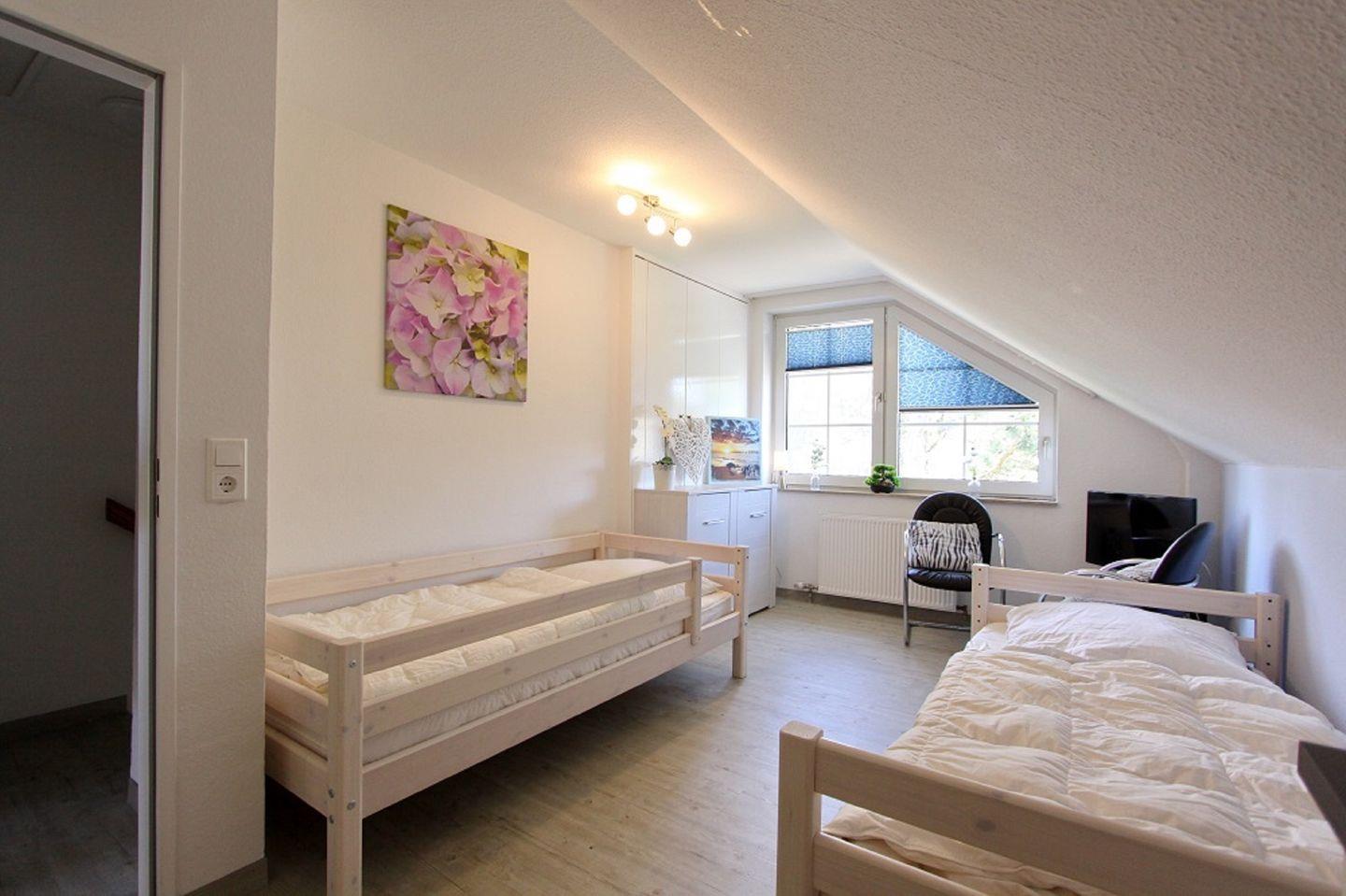 Das zweite Schlafzimmer verfügt über zwei Einzelbetten (90x200cm), Kommode und Flach TV mit Sitzecke.